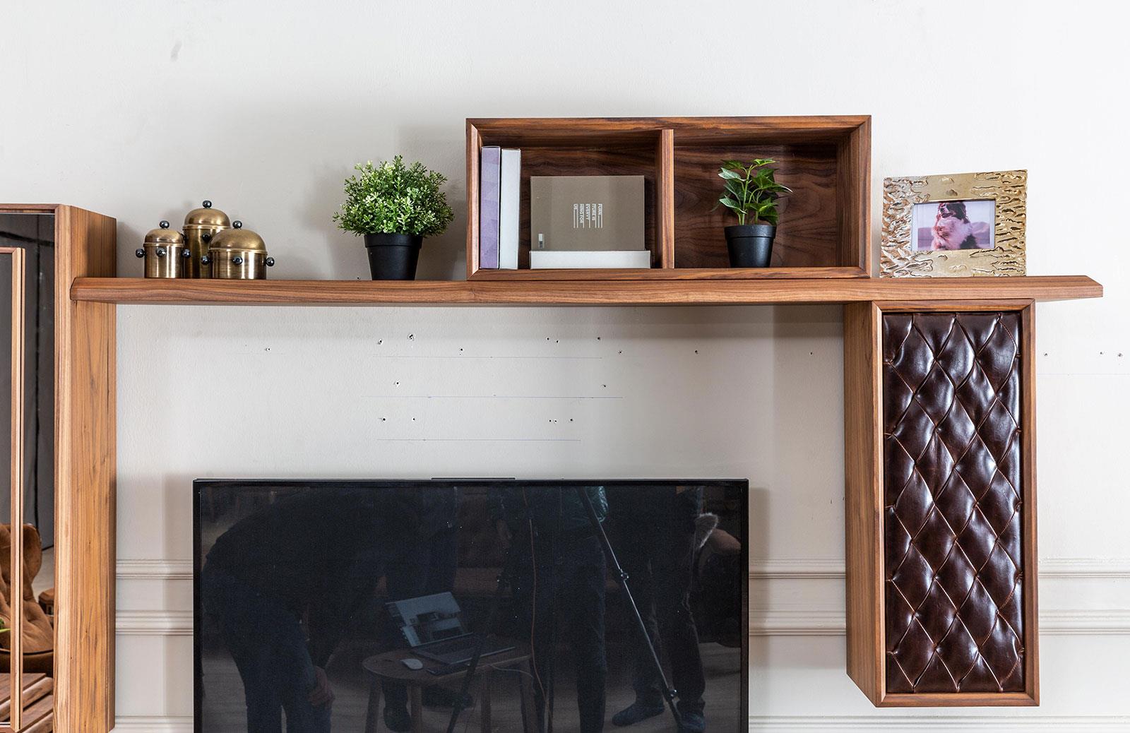 Audra Tv Ünitesi, ahşabın en zarif ve asil yorumunu Engince Mobilya stiliyle yaşam alanlarına taşıyor. Cevizin baş rol olarak yer aldığı ve ahşap görünümün tüm güzelliğini yalın bir şekilde yansıttığı televizyon ünitesi, yaşam alanlarına benzersiz bir dokunuş yapıyor. Televizyon sehpasında yer alan şömine detayı modelin en dikkat çekici noktası oluyor. Aynalı modül, döşemeli modül, düz ve kutu rafı ise Audra Tv Ünitesi’nin içeriğini oluşturan parçalar oluyor. Audra, cevizin kendine has retro tasarımını, köşeli yüzeyleri ve deri detaylarıyla zenginleştirip modern anlayışı gözler önüne seriyor.