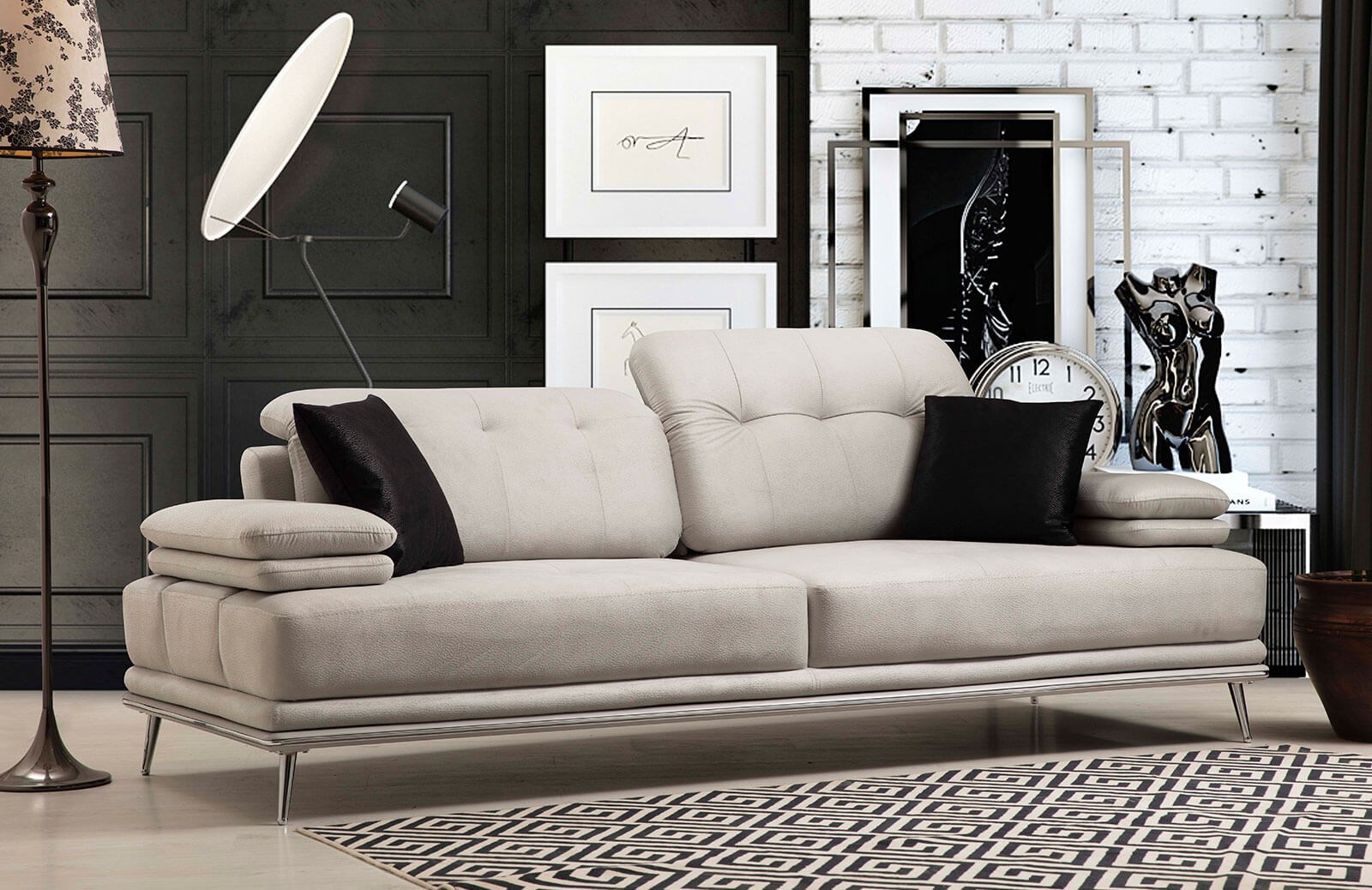 Salon dekorasyonunuzda büyük bir yenilik yapmak istiyorsanız Austin koltuk takımının karşı konulmaz kalitesini gönül rahatlığı ile tercih edebilirsiniz. 2 adet üçlü koltuk ve 1 adet berjerin yer aldığı Austin koltuk takımı, cezbedici tasarımının yanı sıra ihtiyaçlarınıza da cevap veriyor. Takım, kuru temizlemeye uygun değildir. Sadece su ve beyaz sabun ile silinebilmektedir. İthal birinci sınıf kumaş ile döşenir ve 32 dns hr süngerin kullanıldığı orta yumuşak bir oturum minderine sahiptir. Kumaş ve renginde değişiklik yapabileceğiniz gibi ayak rengini de değiştirebilirsiniz. Kademeli açılabilir atlamalı kol ve başlık mekanizmasi ile konforunuza konfor katan Austin koltuk takımı, senelerce yeniliğini korur.