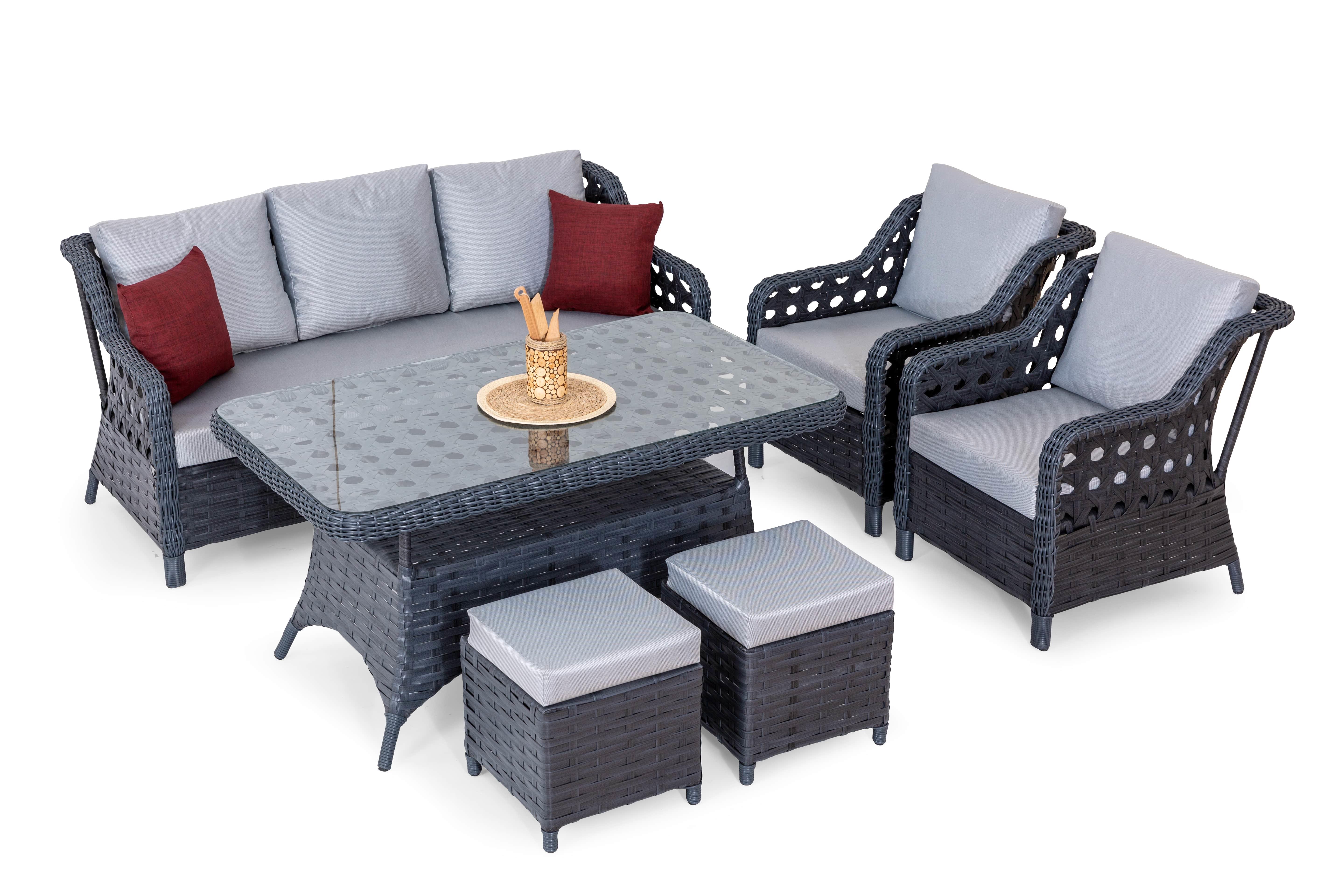 İçeriği, 3+1+1+Sehpa+2Puf şeklindedir. Alüminyum İskeletli üründür.