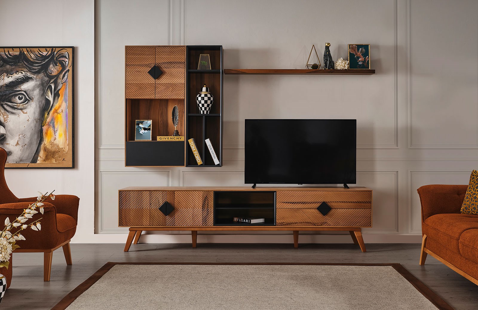 Ahşabın doğallığını ve sadeliğini evinize taşımak istiyorsanız Cardoso tv ünitesini gönül rahatlığı ile tercih edebilirsiniz. Tv sehpası ve üst bloktan oluşan Cardoso tv ünitesi, farklı kombinasyonlar ile değiştirilebilir ve bu sayede her ev dekorasyonuna uyum sağlar. Ürünün ayakları yerden yüksek olup, ayaklarında da ahşap malzemenin doğal etkisi kullanılır. Kullanım kolaylığı açısından tüm kapaklarda yavaşlatıcı mekanizma yer alır. Böylece sağlamlığını destekleyerek, uzun ömürlü yapısını korur. Kanserojen madde içermeyen birinci sınıf malzemelerin yer aldığı ürün, tamamen kullanıcı dostudur. Cardoso tv ünitesi ile evinizi baştan yaratın!