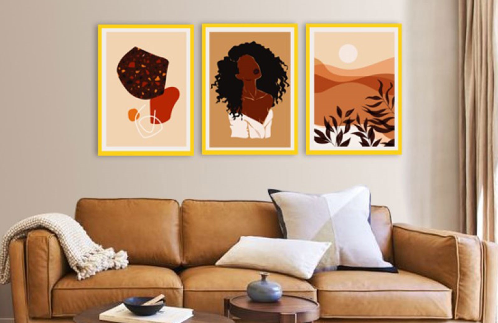 Çerçeveli Üçlü Abstract Tablo Seti -DC1831 - Sarı