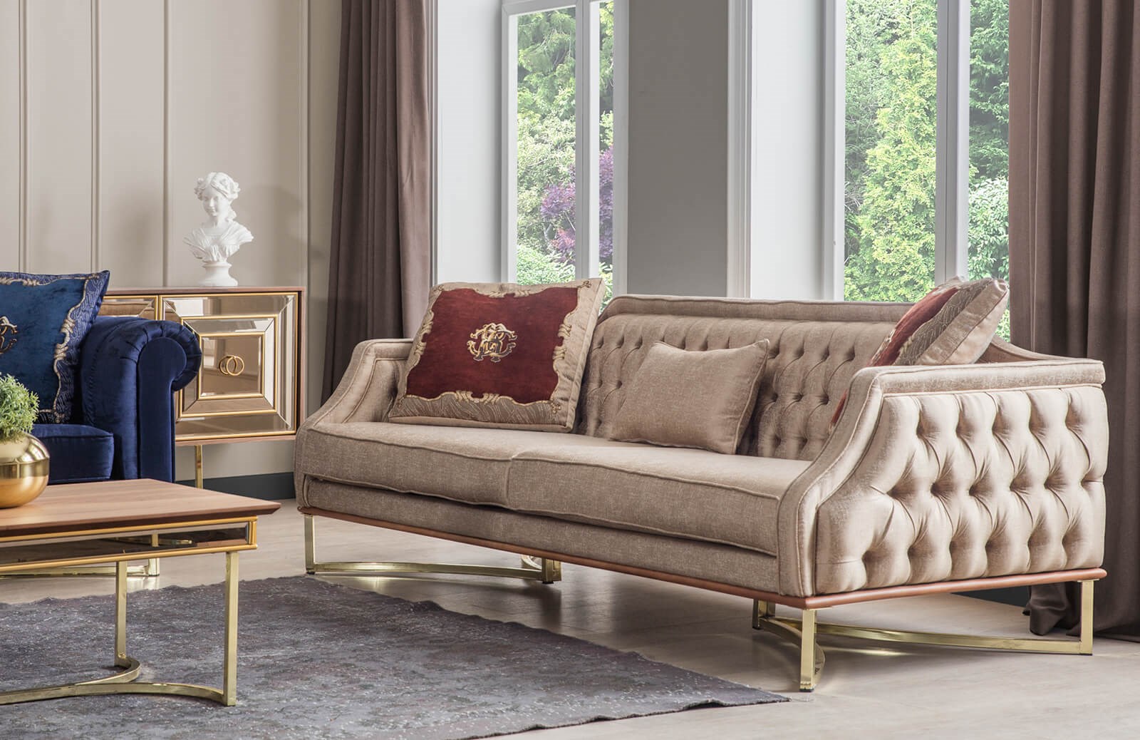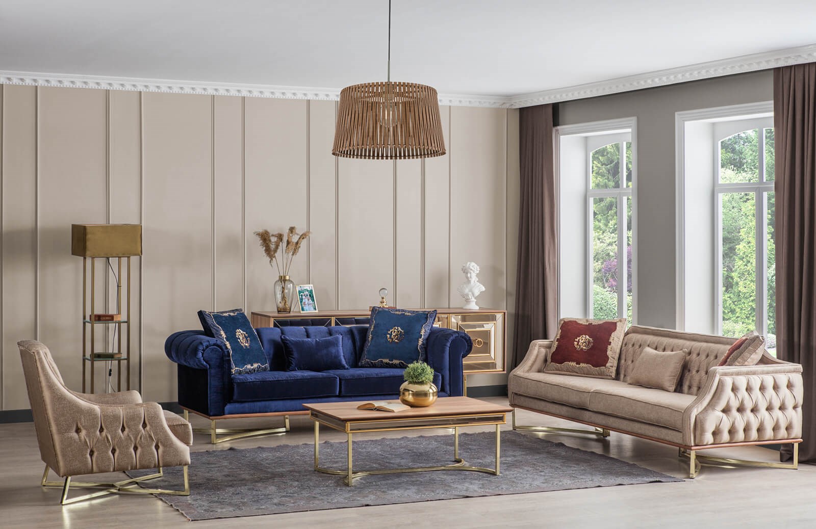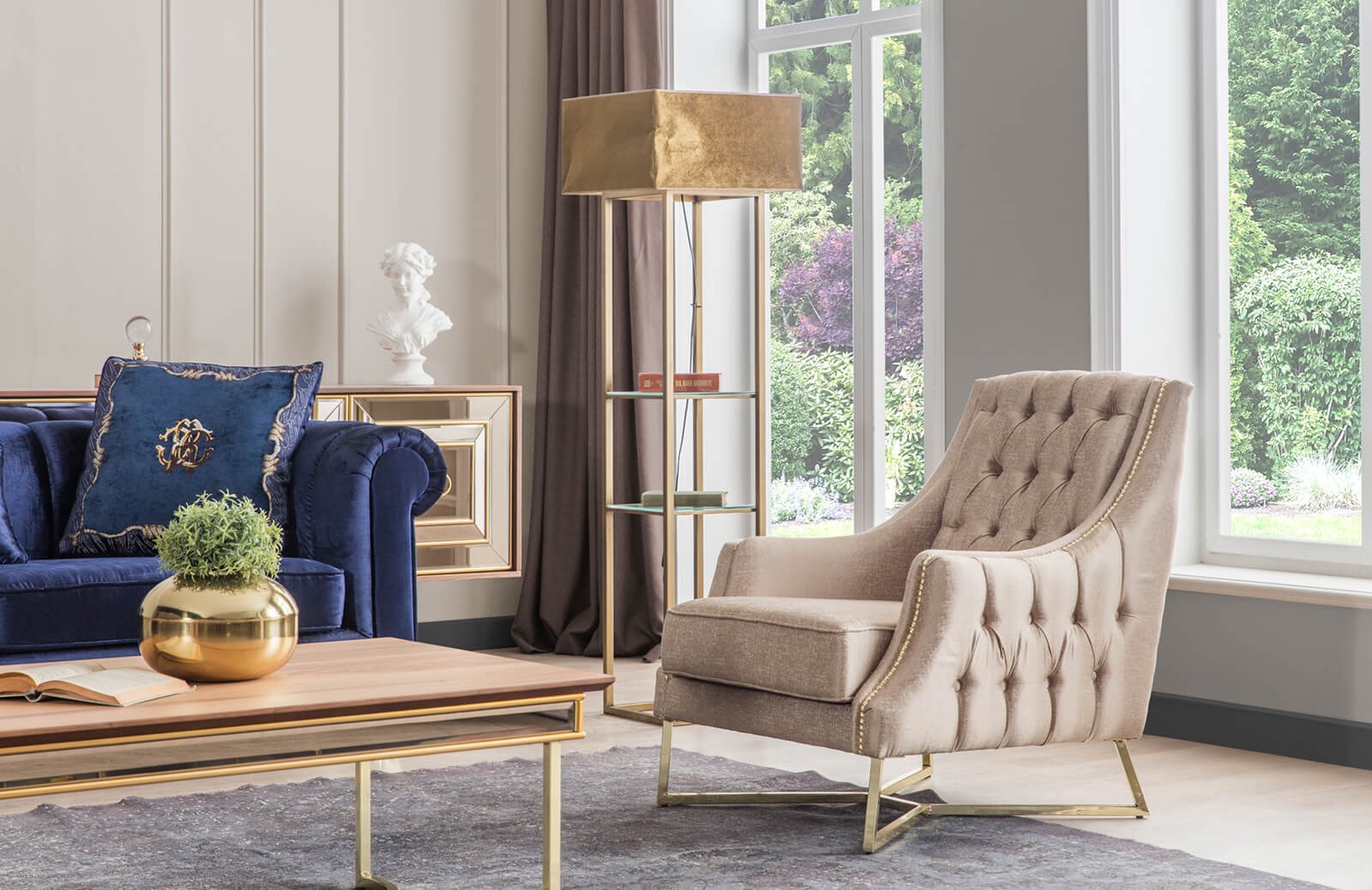Dekoratif detayların modern tasarım anlayışı ile bir araya geldiği Chantae Koltuk Takımı, eşsiz şıklığını yaşam alanlarına taşıyor. Engince Mobilya’nın estetik anlayışını vurgu yapan detaylar klasik-modern kodları kullanıldığı mekana yeni bir yorum kazandırıyor. Kapitone düğme detayları, özgün anlayışı sahip iki adet 3’lü koltuğu ve berjer modeli Chantae’yi diğer koltuk takımlarından farklı bir noktaya taşıyor. Metal ve altın rengi ayak yapısı modelin zengin görünümünün odak noktası olmayı başarıyor. Chantae Koltuk Takımı ile siz de yaşam alanlarınızı güzelleştirebilir ve Engince kalitesini deneyimleyebilirsiniz.