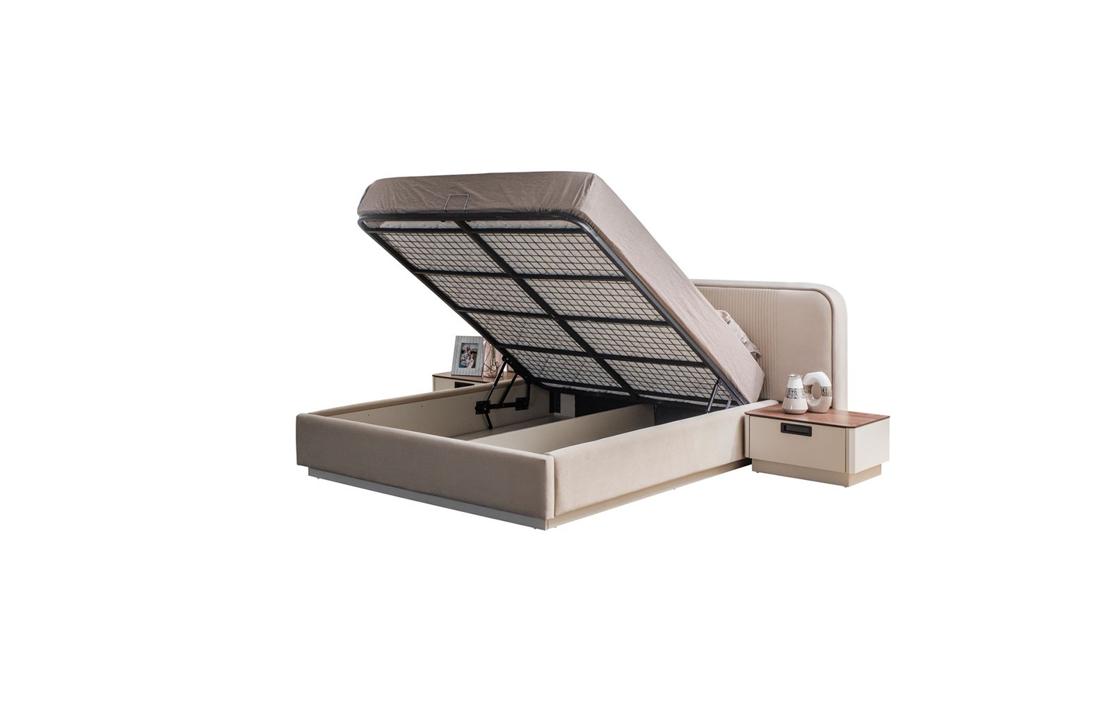Modern yatak odası dekorasyonları için iyi bir tercih olan Chiara bazalı karyola, zamana meydan okuyan bir kalite ile sizleri bekliyor. Birinci sınıf malzemelerin özenle seçilerek bir araya getirildiği Chiara bazalı karyola, geniş kullanım alanı sayesinde ihtiyaçlara cevap veriyor. Büyük bir kullanıcı kitlesinin işlevsel mobilyalara öncelik tanımasından dolayı dikkatleri üzerine çeken karyola, kum beji renginde üretilmektedir. Özel ölçü siparişi mümkün olduğundan dolayı her oda tipine kolayca uyum sağlar. Chiara yatak odası takımında yer alan bu özel tasarıma hem takım eşliğinde hem de tek başına sahip olabilirsiniz. Chiara bazalı karyola, son dönemin ilgi çeken ve en çok tercih edilen mobilyalarından biri olmaya devam ediyor.