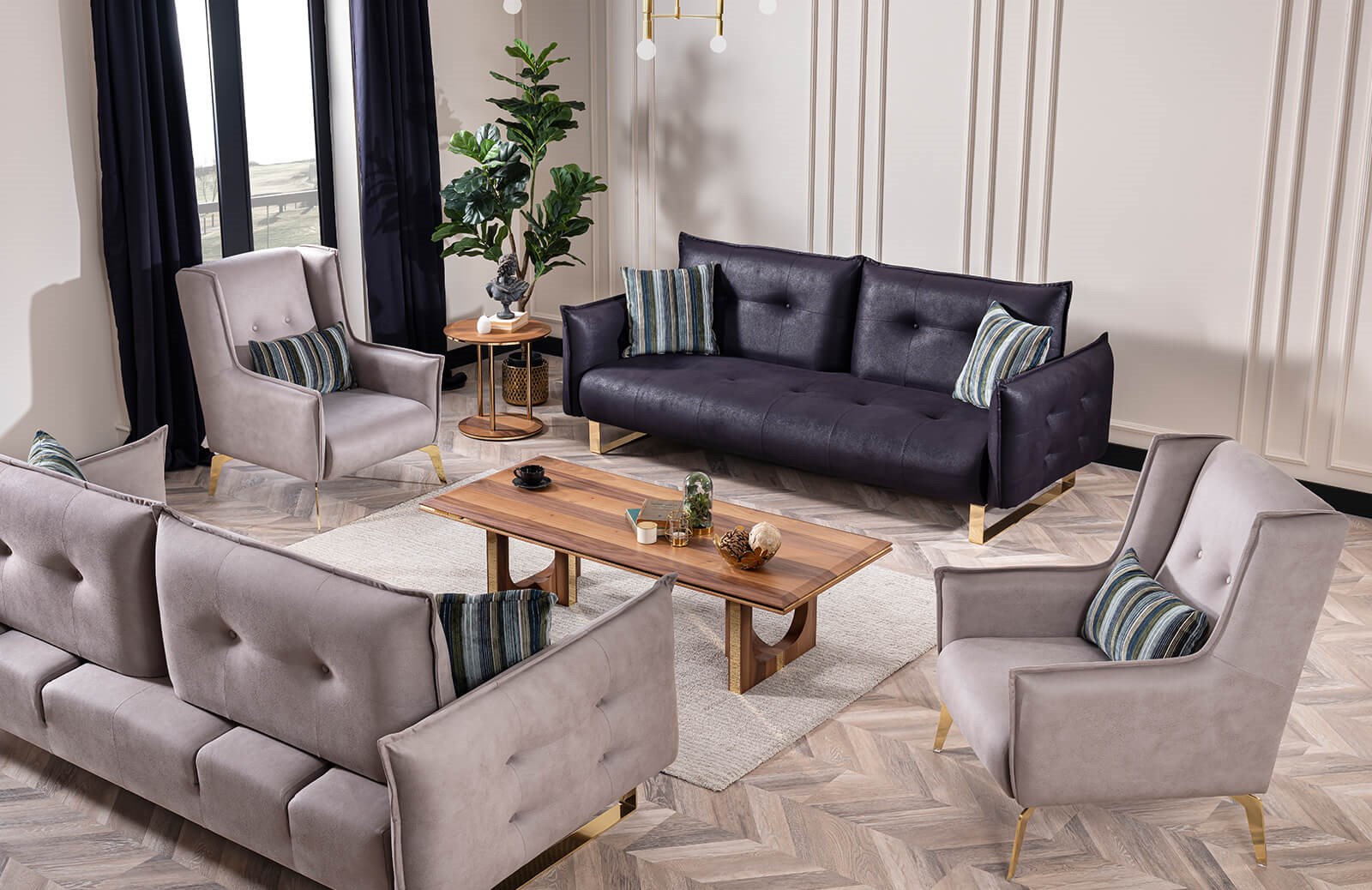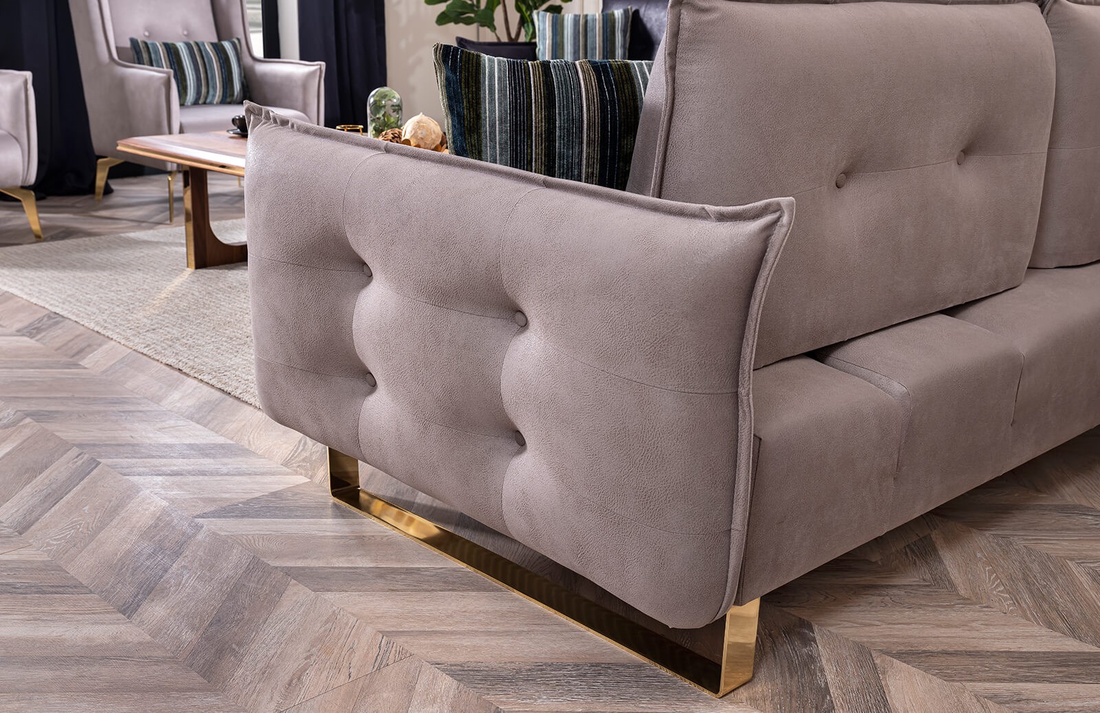 Coby koltuk takımında, 2 adet üçlü koltuk ve 1 adet berjer bulunmaktadır. Tasarımı ile göz dolduran bu takımı farklı bir kombinasyon ile tercih edebilirsiniz. Fırınlanmış gürgen ağacından üretilen takım, ithal birinci kalite exclusive kumaş ile döşenir. Kuru temizleme için uygun değildir ancak su ve beyaz sabun ile silinebilir özelliğe sahiptir. 36 dns soft süngerin yer aldığı oturum minderleri, kalitesinden asla ödün vermez. Yay içermez ve böylece uzun ömürlü yapısını korur. Coby koltuk takımına sahip olmak için acele edin! Siparişiniz sırasında kumaş ve renk alternatiflerinden yararlanabilir, ayak renginde değişiklik yapabilirsiniz. Sipariş sonrası üretilen mobilyalar arasındaki Coby koltuk takımı, modern tasarımı ile beğenileri üzerine toplamaktadır.