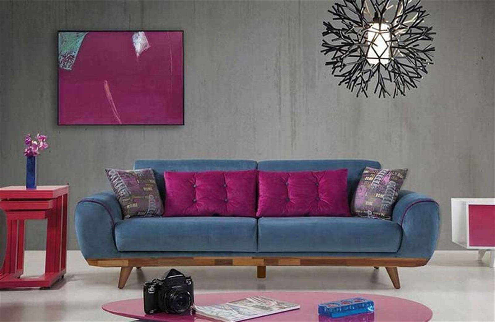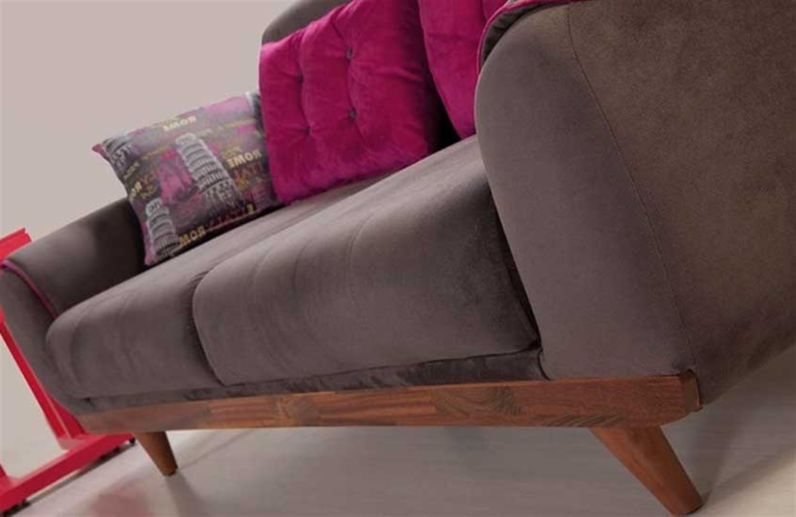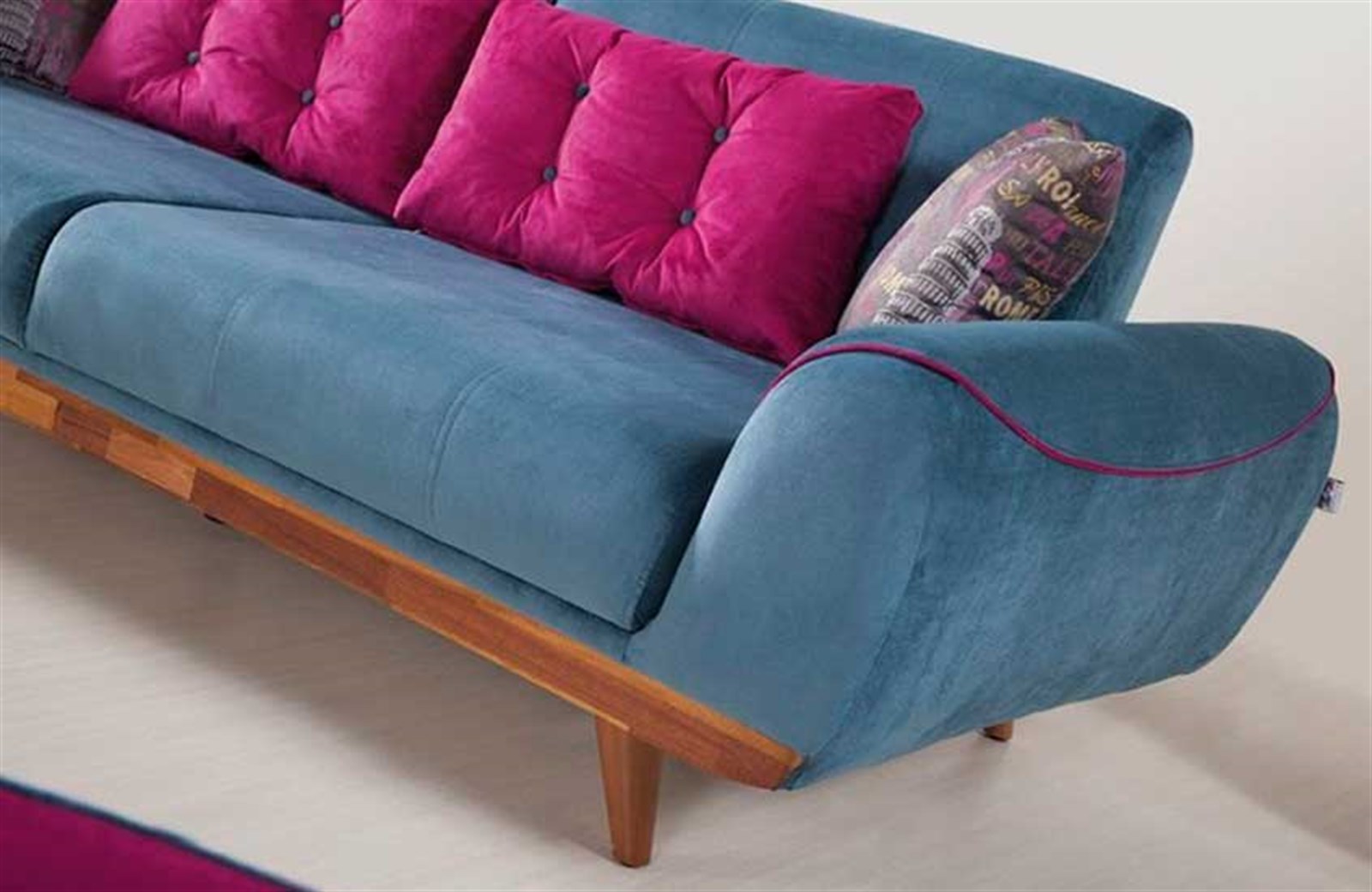 Dhoom Koltuk Takımı’nın yalın ve fonksiyonel tasarımı ile evinizi keyifli bir dinlenme alanına çevirebilirsiniz. Farklı renk ve kumaş seçenekleri bulunan model her tarza uyum sağlıyor. Koltuk takımını doğru öğeler ile birleştirdiğinizde son derece gösterişli ve özgün bir dekorasyon yaratabilirsiniz. Zıt renklerde kırlentler dinamik bir görünüm katarken yumuşak dokuları ile konforu da artırır. Üçlü koltuk yatağa dönüşerek rahat bir uyku alanı sunuyor. Yerden yüksek ahşap ayaklar, silinebilir kumaş özelliği sayesinde temizlik oldukça kolay hale geliyor. Dhoom Koltuk Takımı ile eviniz şık ve çağdaş bir görünüme kavuşsun.