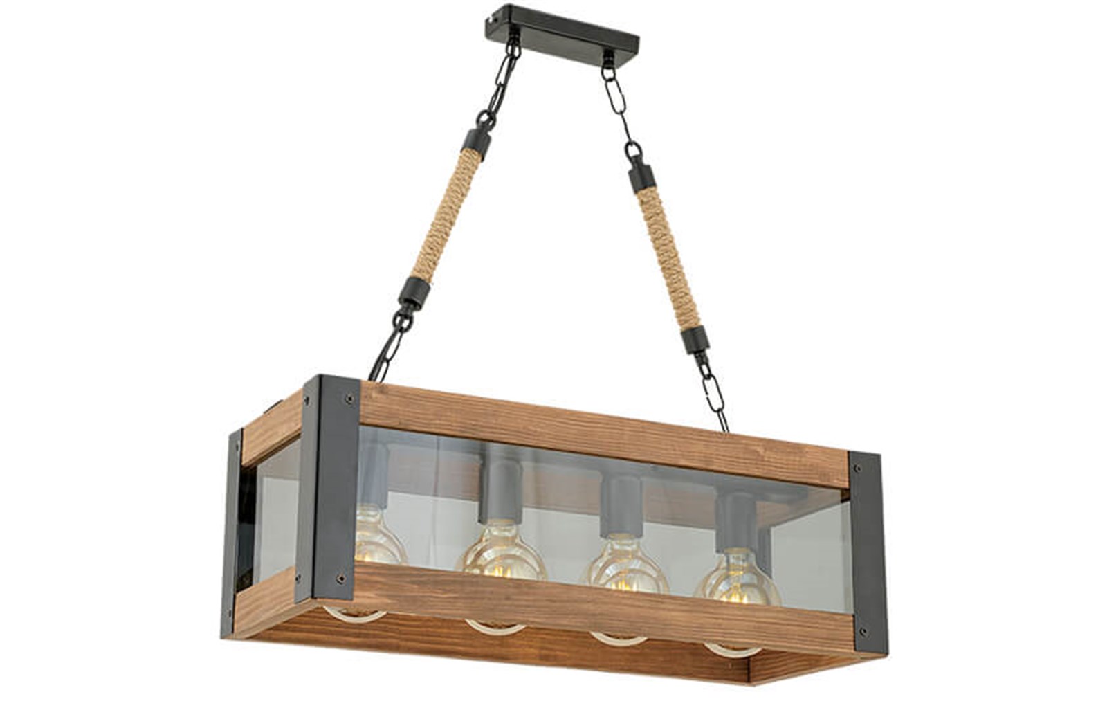E8145-2 Athena 4 Lü Ahşap Avize 60 cm - cm 25 cm