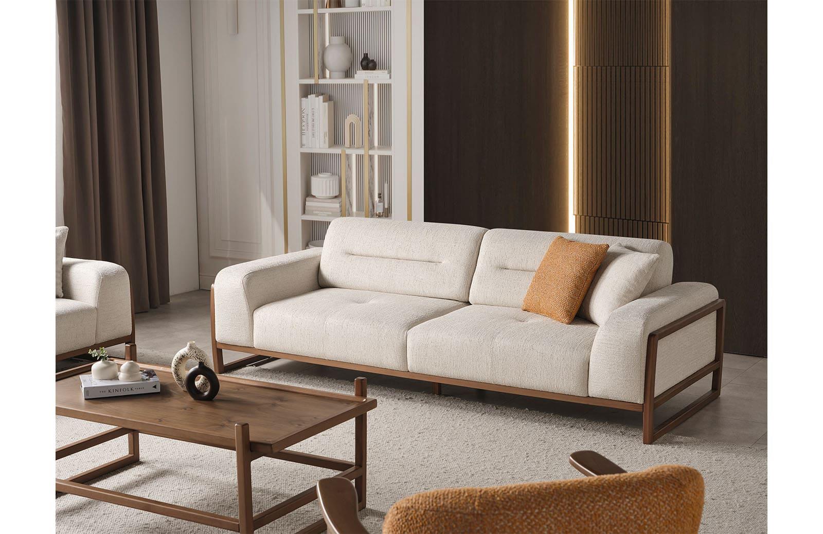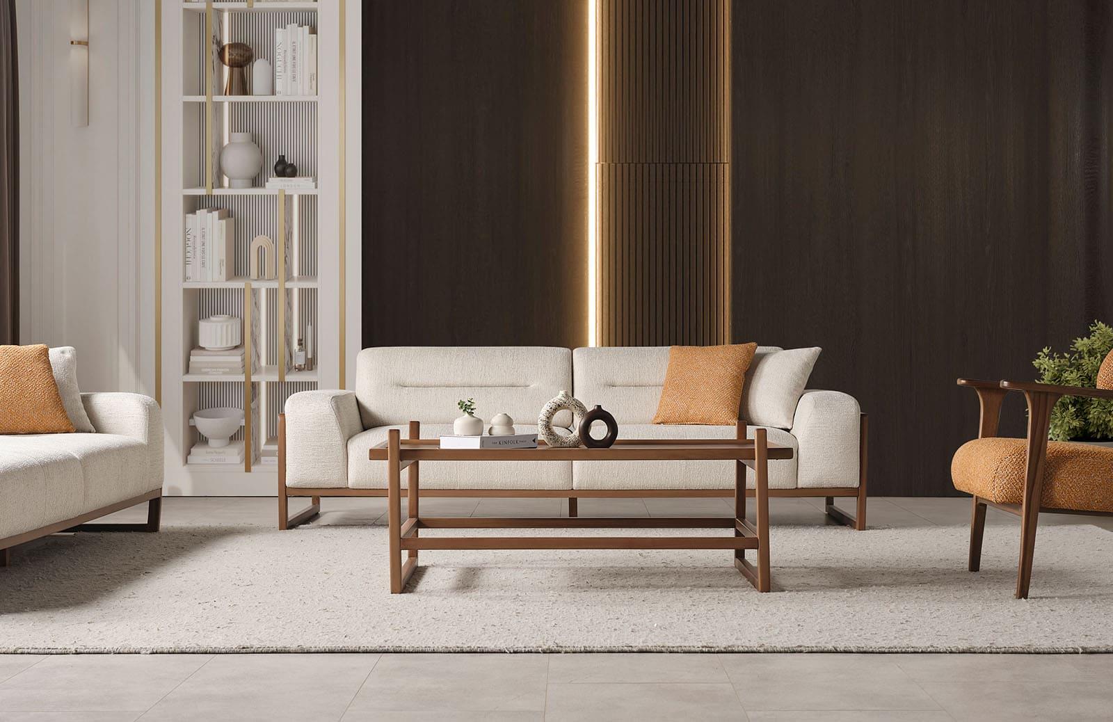 Oturma odası takımları, kolay bakım ve temizlik özellikleri ile de dikkat çeker. Su ve beyaz sabun ile silinebilir kumaş yapısı, günlük yaşamda pratik bir kullanım sağlar. Evinizi modern bir dokunuşla dekore etmek için ideal bir tercihtir.