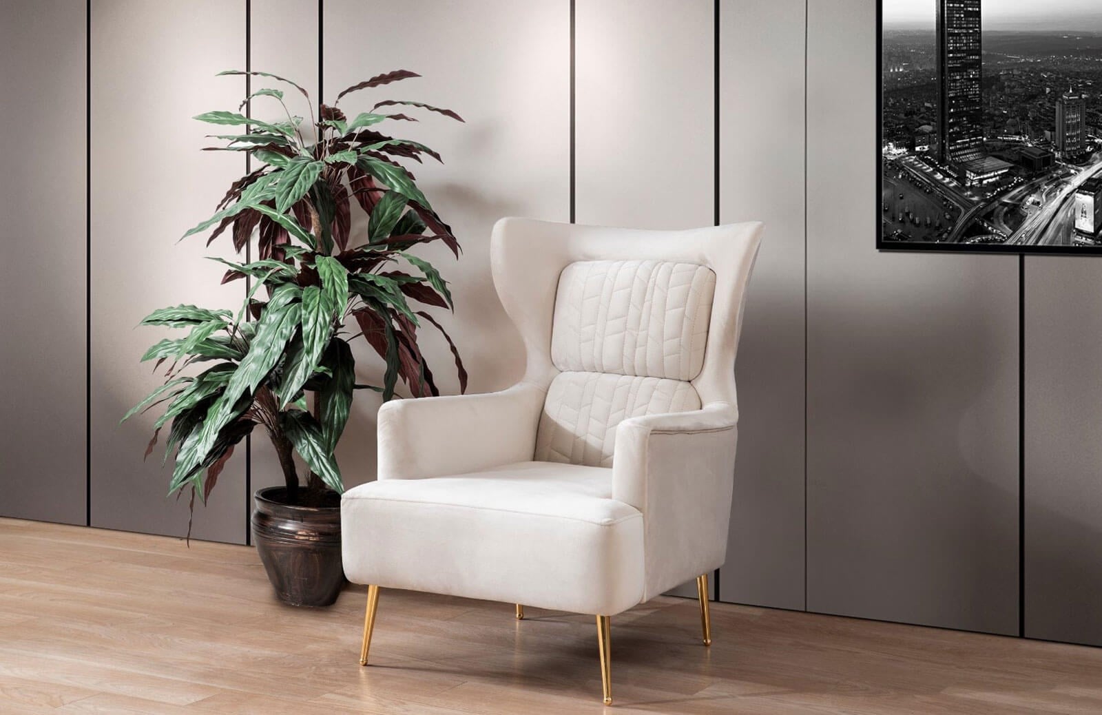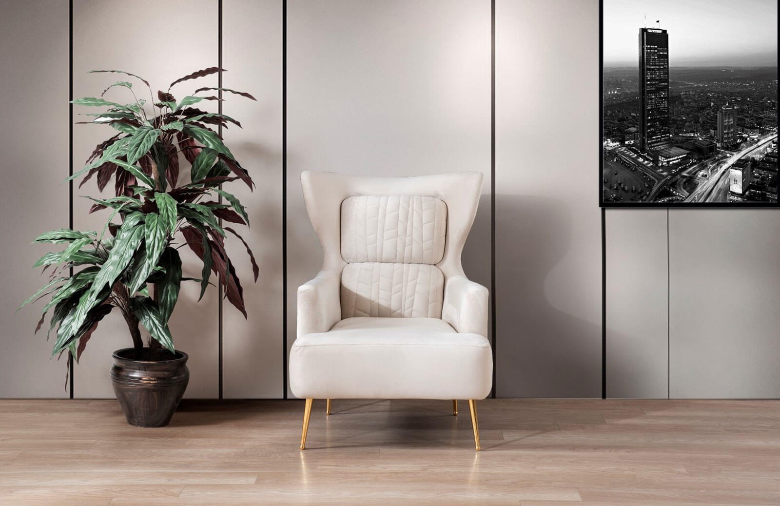 Zarif detayları ile yaşam alanınıza yeni bir hareketlilik kazandıracağınız Eliska berjer, modern mobilya modasının son trendlerine uygun şekilde üretilmektedir. Açık rengine metal gold ayakların eşlik ettiği Eliska berjerin gövde malzemesinde gürgen ağacı kullanılır. Tamamen yüksek kalite standartlarına uygun bir üründür ve uzun yıllar sağlamlığını kolaylıkla korur. Ürün, birinci sınıf kadife kumaş ile döşenir ve 32 dns hr süngerin yer aldığı oturum minderine sahiptir. Konforu ve rahatlığı ile en keyifli köşeniz olmaya hazır bir üründür. Kuru temizleme için uygun olmayan berjer, su ve beyaz sabun yardımı ile kolayca silinebilir. Eliska berjer, son döneme damgasını vuran tasarımı ve yüksek konfor anlayışı ile evinize çok yakışacak. Dilerseniz siparişiniz sırasında kumaş ve renk alternatiflerinden yararlanabilirsiniz.