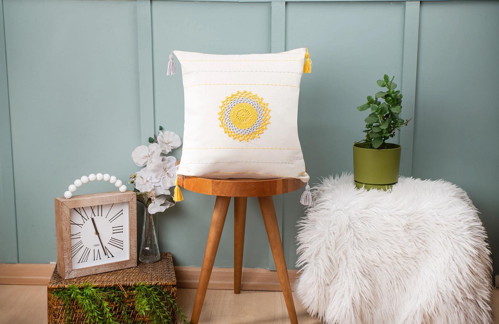 1.Sınıf Keten kumaştan el işçiliği ile üretilmiştir. Kılıfın üzerine pamuklu ipten el işçiliği ile motif işlemesi uygulanmıştır. Keten kumaş Otantik görünümü ve her daim moda olan keten dokuma özelliğiyle hem kışlık hem de yazlık mekanlarımızın vazgeçilmezleri arasındadır. Salon koltukları, Bahçe takımları veya yatak odası dilediğiniz mekanda kullanabilirsiniz. Ebat;43x43 Cm