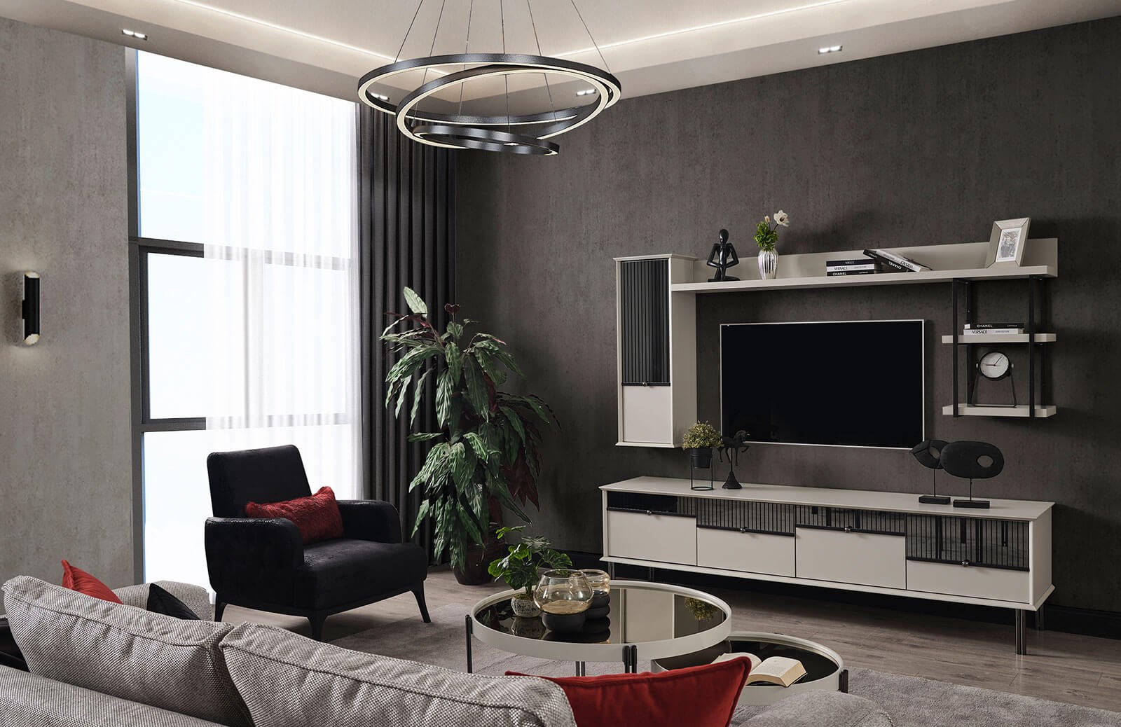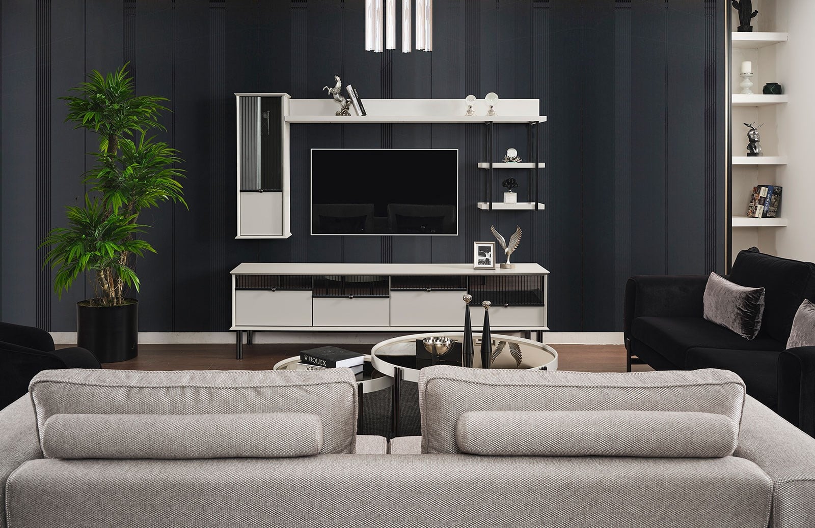 Her detayı ile kalitesini gözler önüne seren Esil tv ünitesi, modern tarzı sayesinde yaşam alanınızda büyük bir etki yaratacak. Esil tv ünitesinde, tv sehpası ve üst blok bulunmaktadır. Dilerseniz bu kombinasyonu evinize en uygun kombinasyon ile tercih edebilirsiniz. Tv ünitesinin gövdesi, birinci sınıf yonga levhadır. Ön kısmındaki füme ayna, ürünün dikkat çeken detaylarından sadece biridir. Çekmecelerin frenli sistemi ve kapaklardaki yavaşlatıcı mekanizma sayesinde uzun yıllar dayanıklılığını kolayca korumaktadır. Esil tv ünitesinin üretiminde sağlığa zararlı hiçbir madde kullanılmaz. Gönül rahatlığı ile bu özel tasarıma anında sahip olabilirsiniz.