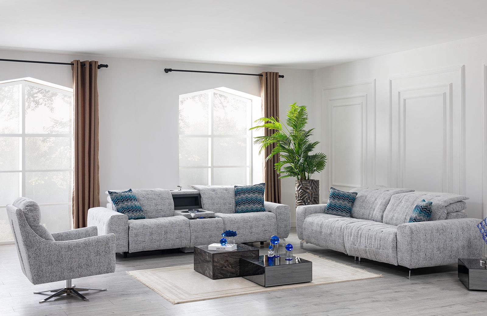 Modern oturma odaları için tasarlanan bu şık oturma odası takımı, kullanıcı dostu ve mekanizmalı özellikleriyle öne çıkıyor. Bluetooth ve ses sistemi sayesinde, sevdiklerinizle birlikte müzik keyfini doyasıya yaşayabilirsiniz. Ayrıca cep telefonlarınızı kolayca şarj edebilme imkanı sunan bu takım, günümüzün teknolojik çözümlerini karşılıyor.Soğutma özellikli bardaklık bölümü, içeceklerinizi serin tutuyor, konforlu anlarınızı daha da özel kılıyor. Bu oturma odası takımı, hem şıklığı hem de fonksiyonelliği bir araya getirerek, misafir odası takımları arasında farklı bir seçenek sunuyor.