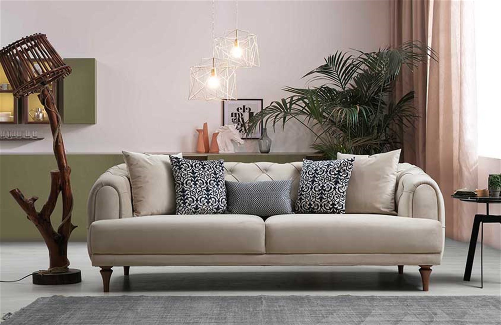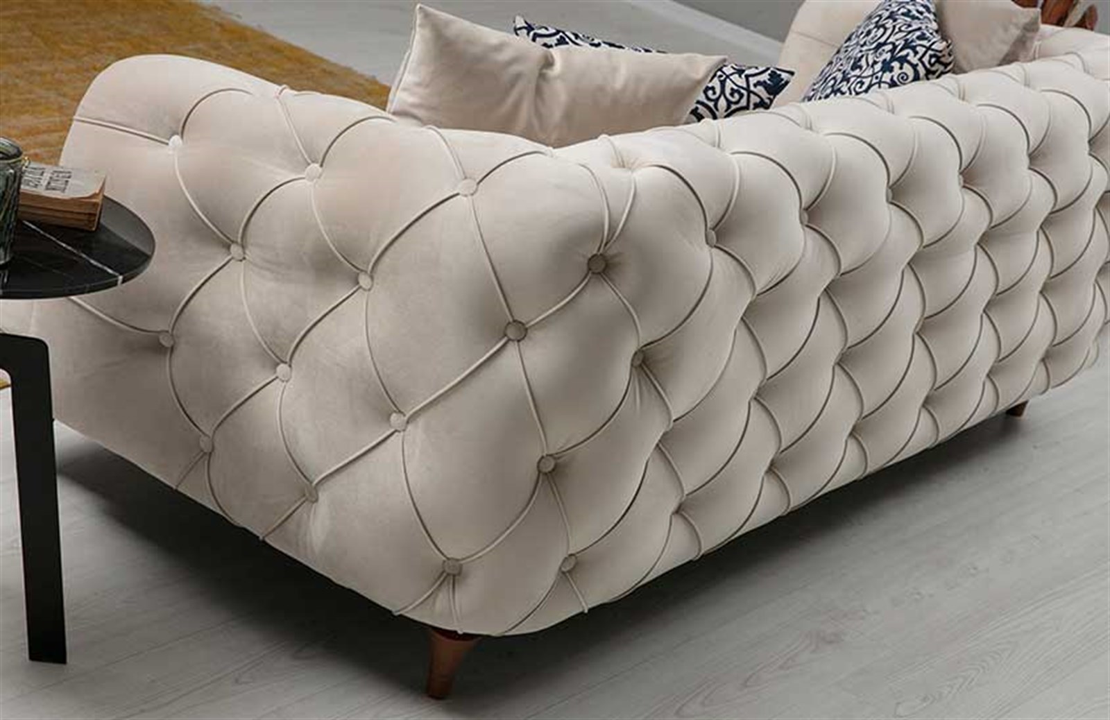 Görünümüyle fark yaratan Fallon Üçlü Koltuk; dış tasarımında yer alan kapitoneli kumaş, oymalı ayak tasarımı ve desenli kırlentleri ile evlere ihtişamı getiriyor. Klasik tasarımı sevenler için ideal bir seçim olacak model, dayanıklı yapısıyla da yıllara meydan okuyor. Sağlam ayak yapısı çizilme, darbelere dayanıklılık gösterirken; 1. kalite exclusive kumaş kolay temizlenme özelliğiyle yıpranmıyor. Farklı renk ve kumaş seçenekleriyle beğeninize sunulan Fallon Üçlü Koltuk Engince Mobilya’da.