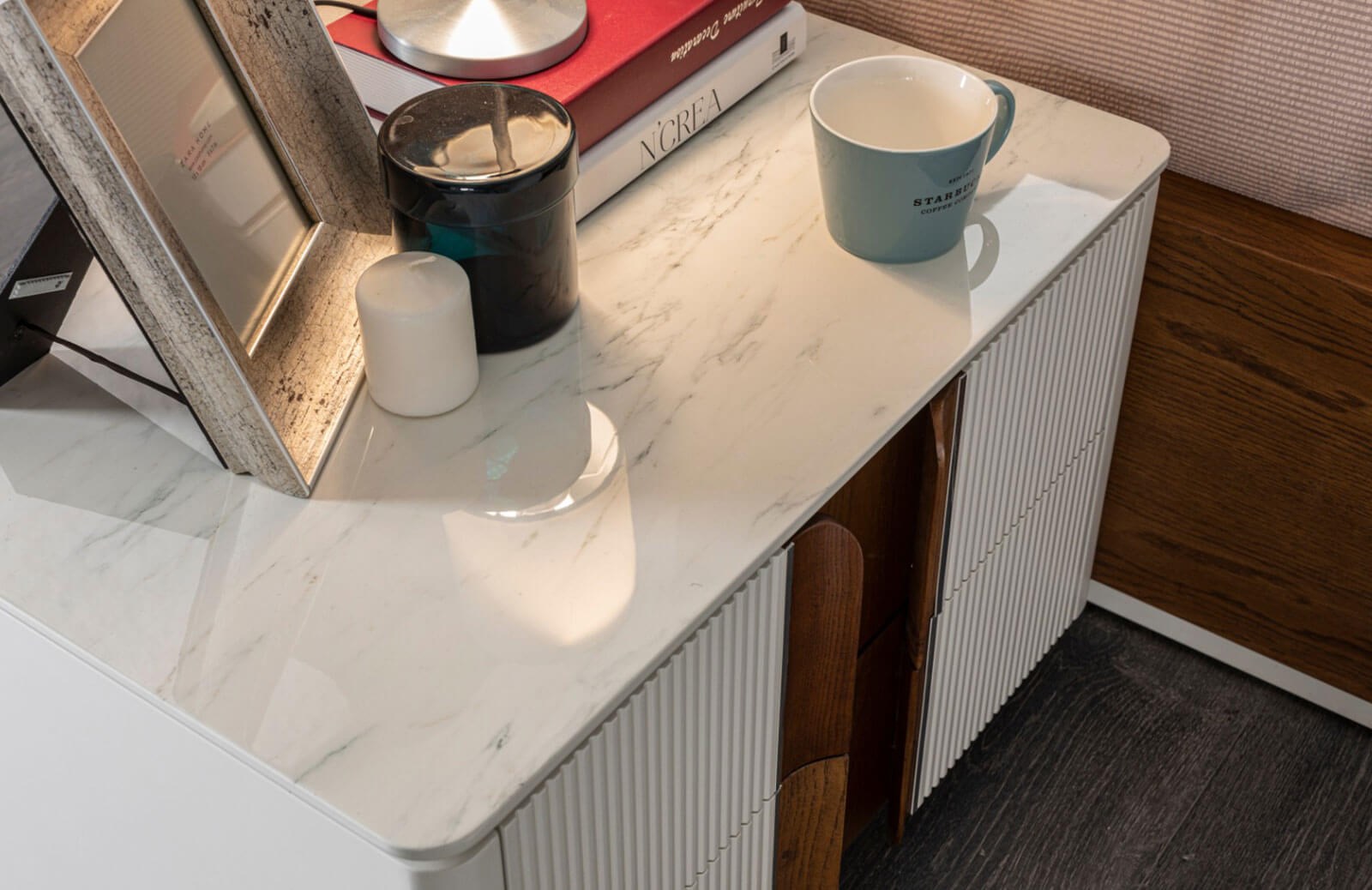 Feroza yatak odası takımı, her bir parçası ile hayatınıza kolaylığı ve kaliteyi dahil eden benzersiz bir tasarımdır. Her şeyin sizler için düşünüldüğü Feroza yatak odası takımı, zamanı durduran sadeliği ile yaşam alanınıza yeni bir boyut kazandıracak. Takımda yer alan; dolap, bazalı karyola, şifonyer, ayna ve 2 adet komodini farklı kombinasyonlarda tercih etmeniz mümkündür. Ürünün tüm kapakları yavaşlatıcı mekanizma ile desteklenir, aynı zamanda karyoladaki bariyerli kilitli baza sistemi ile güvenliğinizi sağlar. Bazanın genişliği sayesinde dilediğiniz eşyayı düzen içinde muhafaza edebilirsiniz. Takıma dahil olan yatak başlığı, farklı renk seçenekleri ile her dekorasyona uyum sağlar. Ürünün imalatı sırasında birinci sınıf yonga levha ve mdf kullanılır. Bu sayede uzun ömürlü yapısını kolaylıkla korur. Feroza yatak odası takımı, aytaşı ve ceviz renginin muhteşem uyumunu gözler önüne seren modern tasarımı sayesinde gördüğü yoğun ilgiyi giderek arttırmaktadır.