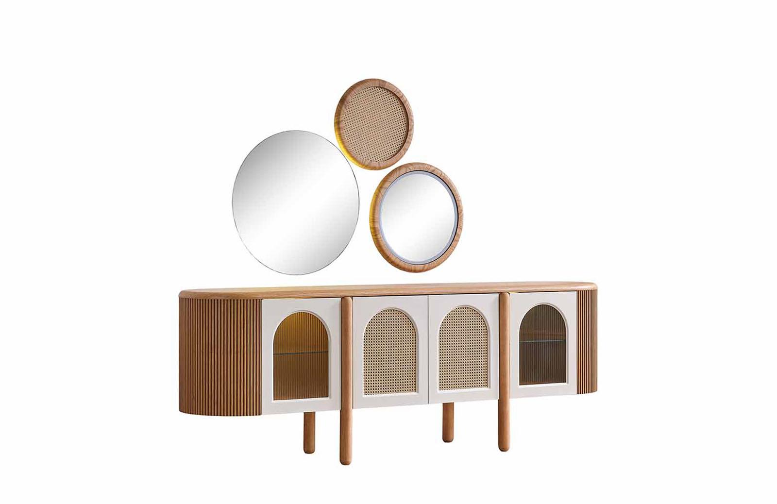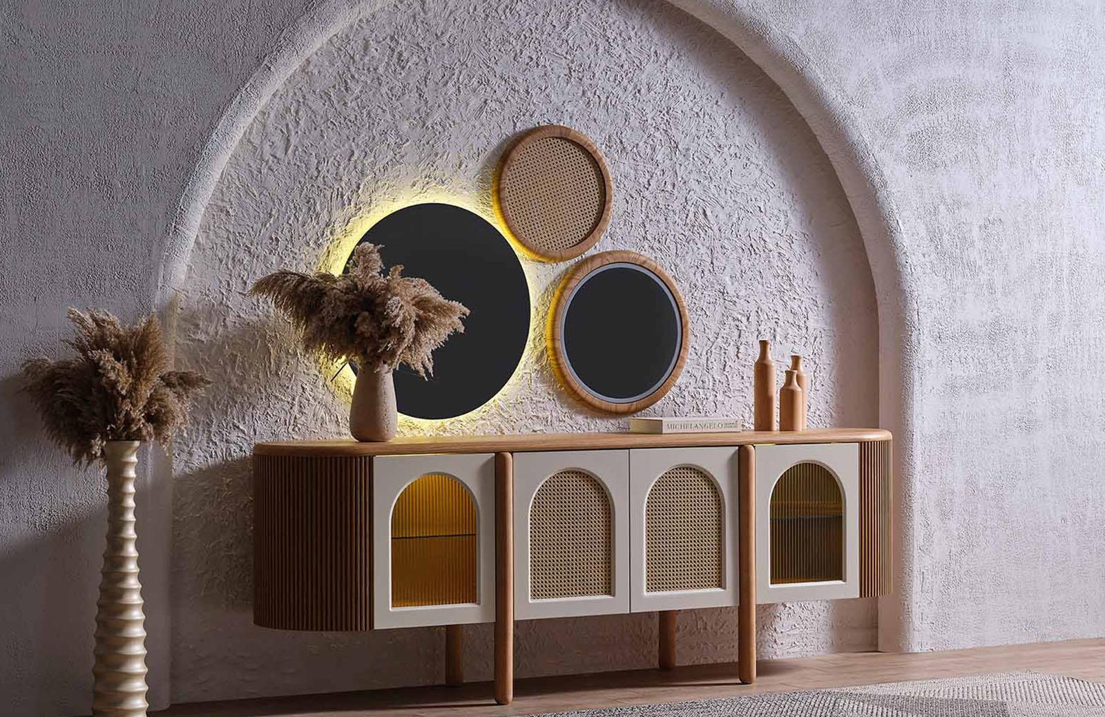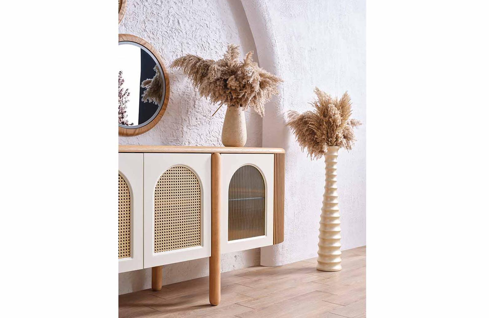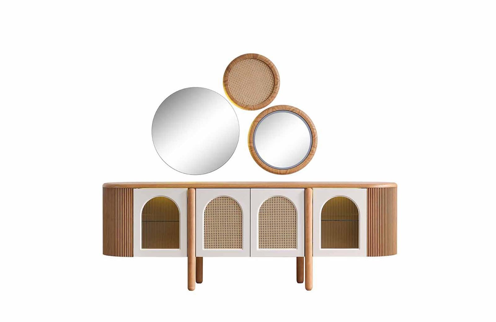 Meşe rengindeki Francis Konsol, doğal ve sıcak bir atmosfer yaratır. Modern ve bohem tasarımıyla dikkat çeken konsol, evinizin her köşesine şıklık katacaktır. Konsol modelleri arasında en çok tercih edilen renklerden biri olan meşe, zamansız bir görünüm sunar. Salon konsol olarak kullanabileceğiniz gibi, yemek odası için de ideal bir seçenektir.