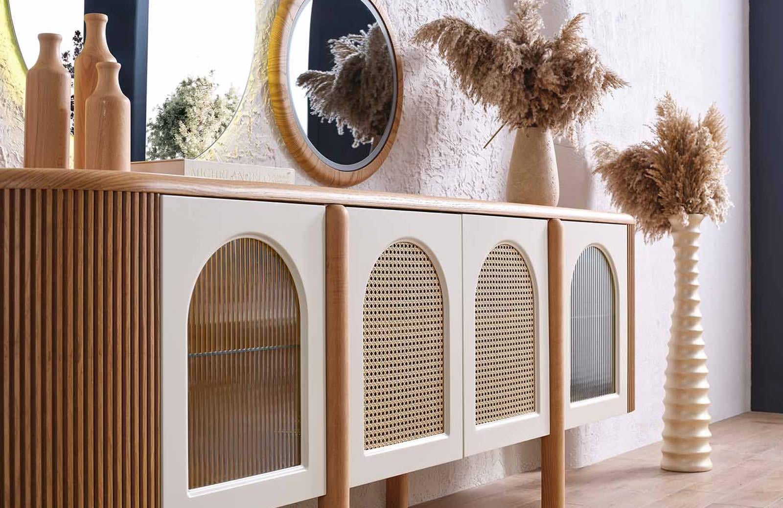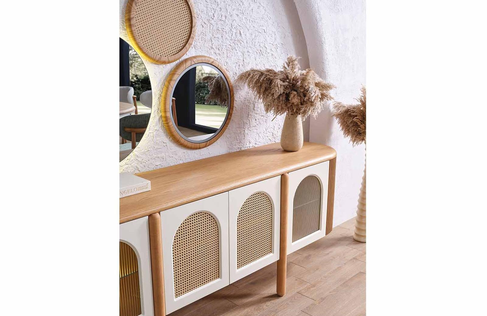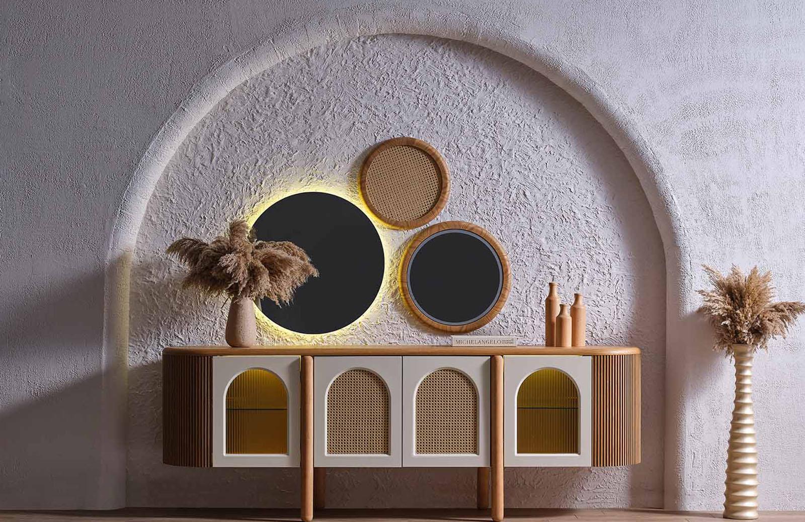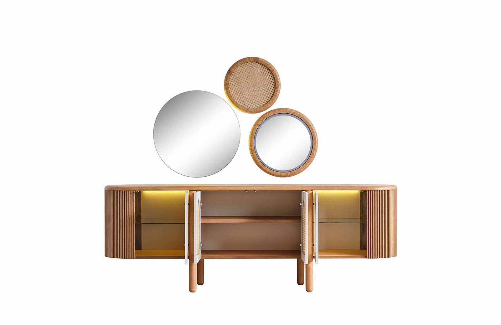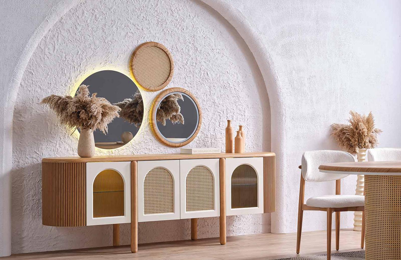 Meşe rengindeki Francis Konsol, doğal ve sıcak bir atmosfer yaratır. Modern ve bohem tasarımıyla dikkat çeken konsol, evinizin her köşesine şıklık katacaktır. Konsol modelleri arasında en çok tercih edilen renklerden biri olan meşe, zamansız bir görünüm sunar. Salon konsol olarak kullanabileceğiniz gibi, yemek odası için de ideal bir seçenektir.