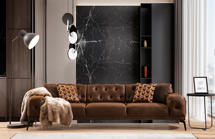 Fredrik Koltuk Takımı, şık tasarım ve nubuk kumaş seçimi ile oturma odanıza dekorasyonunuza zarafet katacak. Nemli bezle kolayca temizlenebilme özelliği sayesinde, misafir odası takımı olarak da kullanmak uygun bir seçenektir.