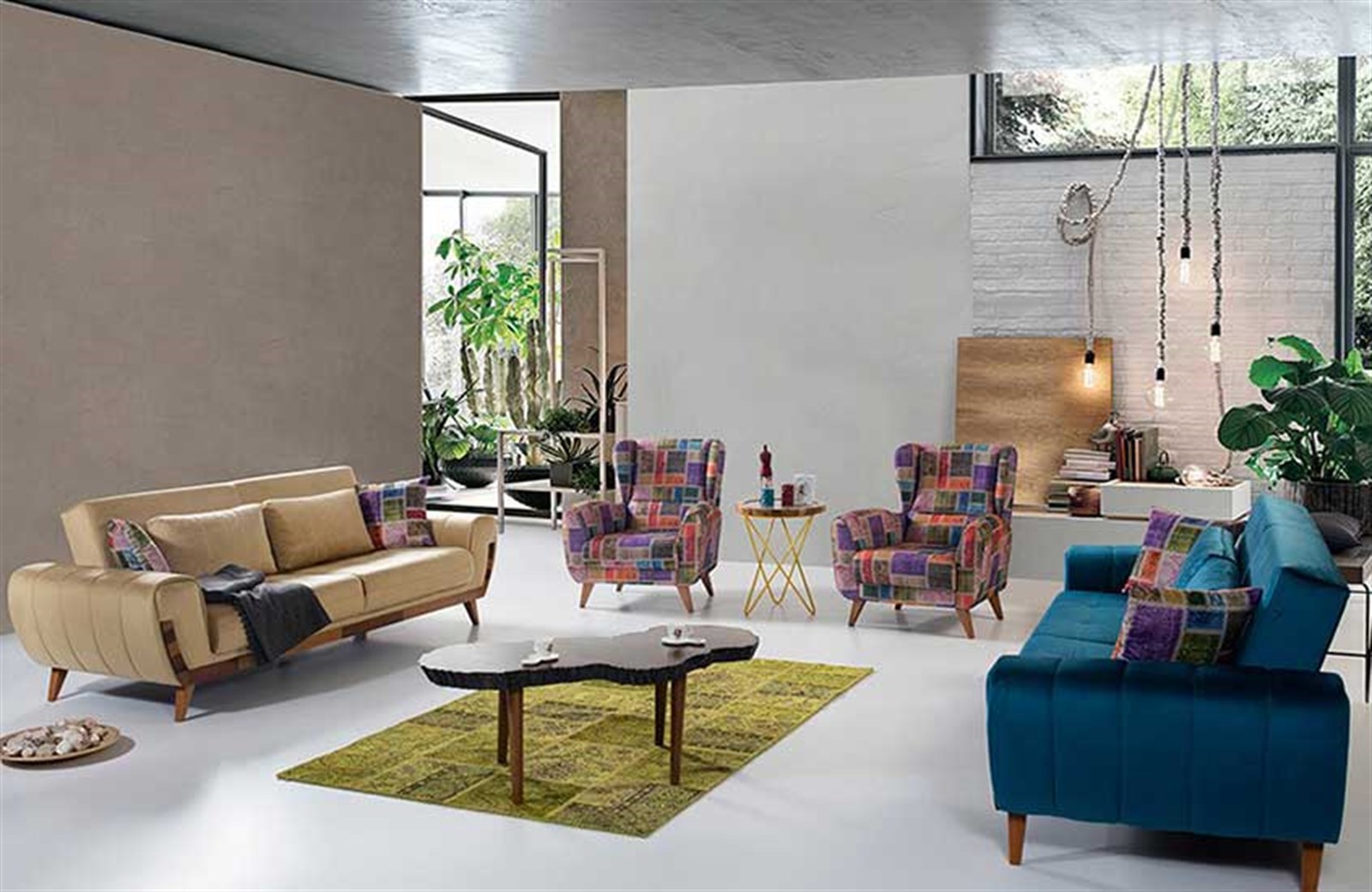 Klasik dekorasyon tarzını sevenlere özel olarak tasarlanan Glossy Koltuk Takımı modeli farklı dekorasyon tarzlarına uyum sağlayan çizgileri ile ön plana çıkıyor. Sade ama çarpıcı bir görünüm sunan koltuk takımı modeli 2 adet üçlü koltuk ile berjerden oluşuyor. Keskin hatları ile klasik tarza vurgu yapan koltuk takımı geniş ve rahat oturma alanlarına sahip. Kolçak alanlarında bulunan ahşap detaylar sayesinde farklı bir görünüm sunan model, farklı renk ve kumaş alternatifleri de sunuyor. Glossy Koltuk Takımını sepetinize ekleyerek hemen sahip olabilirsiniz.