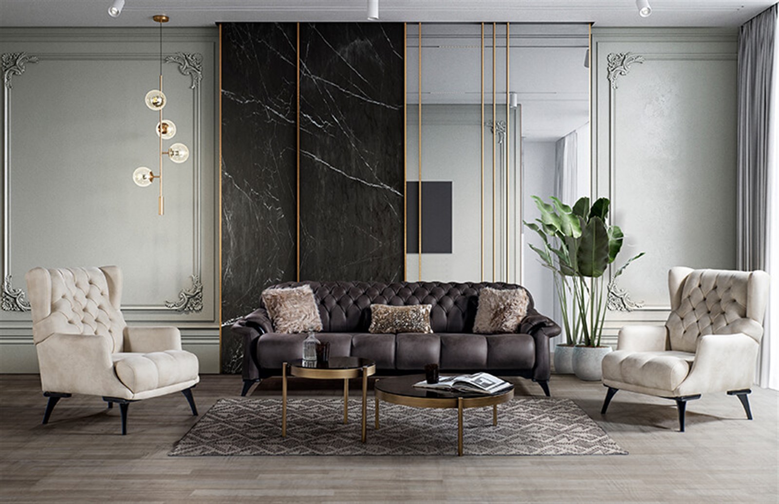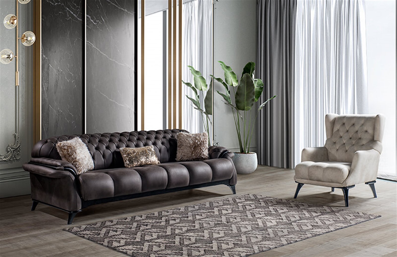 Zengin kumaşları ve konfor sağlayıcı özellikleriyle Heina Koltuk Takımı, oturma odası dekorasyonunuzu güzelleştirir. Modern tasarımı klasik çizgilerle bir arada sunan model, içeriğinde üçlü yataklı koltuk ve tekli koltuk barındırıyor. Üçlü koltuğun oturma bölümünü dilediğiniz şekilde ileriye çekerek rahatça ayaklarınızı uzatabilir ya da koltuğu yatak olarak kullanabilirsiniz. Tekli koltuğun arka bölümü yüksek yapısıyla sırtınız için konforlu bir alan sağlar. Rahatlığın yanı sıra şık detaylarıyla da dikkat çeken Heina Koltuk Takımı uygun fiyatlarla Engince Mobilya’da.