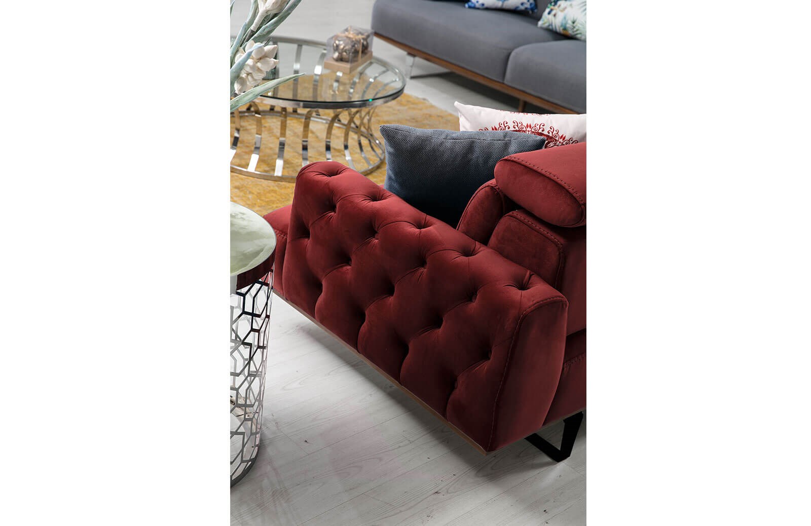 Jayden koltuk takımı ile her anınızı özel kılın! Modern tasarımı ve kalitesi ile son dönemin en dikkat çekici mobilyaları arasına girmeyi başaran Jayden koltuk takımı, 2 adet üçlü koltuk ve 1 adet berjerden oluşmaktadır. Standart kombinasyonu, evinize en uygun şekilde değiştirebilirsiniz. Takım, fırınlanmış gürgen ağacının sağlamlığı ile üretilmektedir. Keten ve kadife birinci kalite exclusive kumaş ile döşemesi gerçekleştirilir. Bu sayede ani yıpranmalara karşı dayanıklılığı arttırılmıştır. Ürün, 32 dns hr süngerin yer aldığı oturum minderleri ile konfor anlayışınızı değiştirecek özel bir mobilyadır. Yay içermediği için uzun ömürlü yapısını kolayca korur. Jayden koltuk takımı ile evinize yeni bir soluk getirebilir, misafirleriniz şık bir mobilyada ağırlamanın mutluluğunu yaşayabilirsiniz.