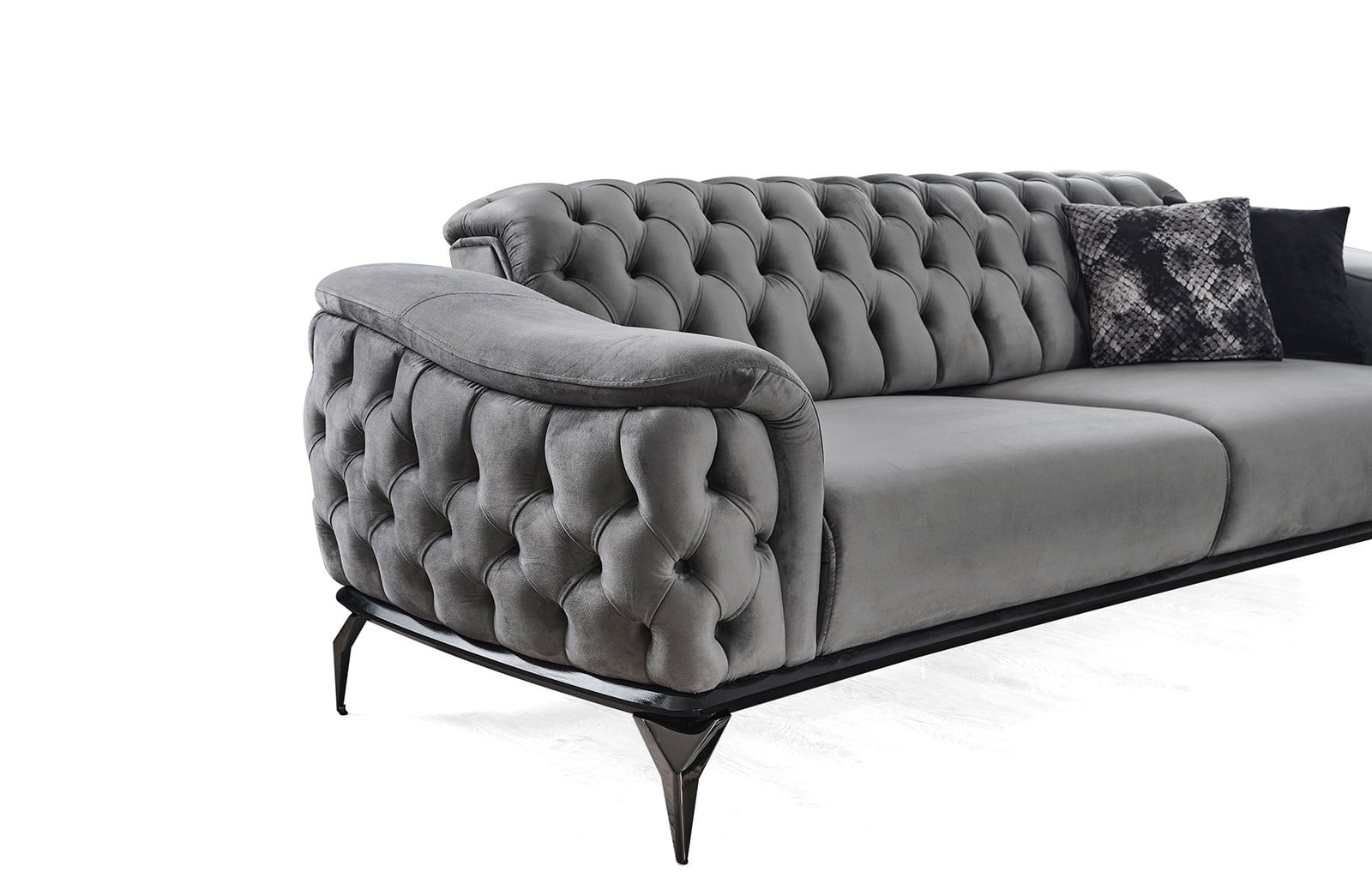 Metal ayak detayı ve birden fazla ayak rengi seçeneği ile oturma odası takımı, kişisel zevkinize ve ev dekorunuza uygun bir şekilde özel olarak bulunabilir. Bu esneklik, misafir odası takımı ve oturma odası koltuk takımları ile mükemmel bir uyum sağlar.