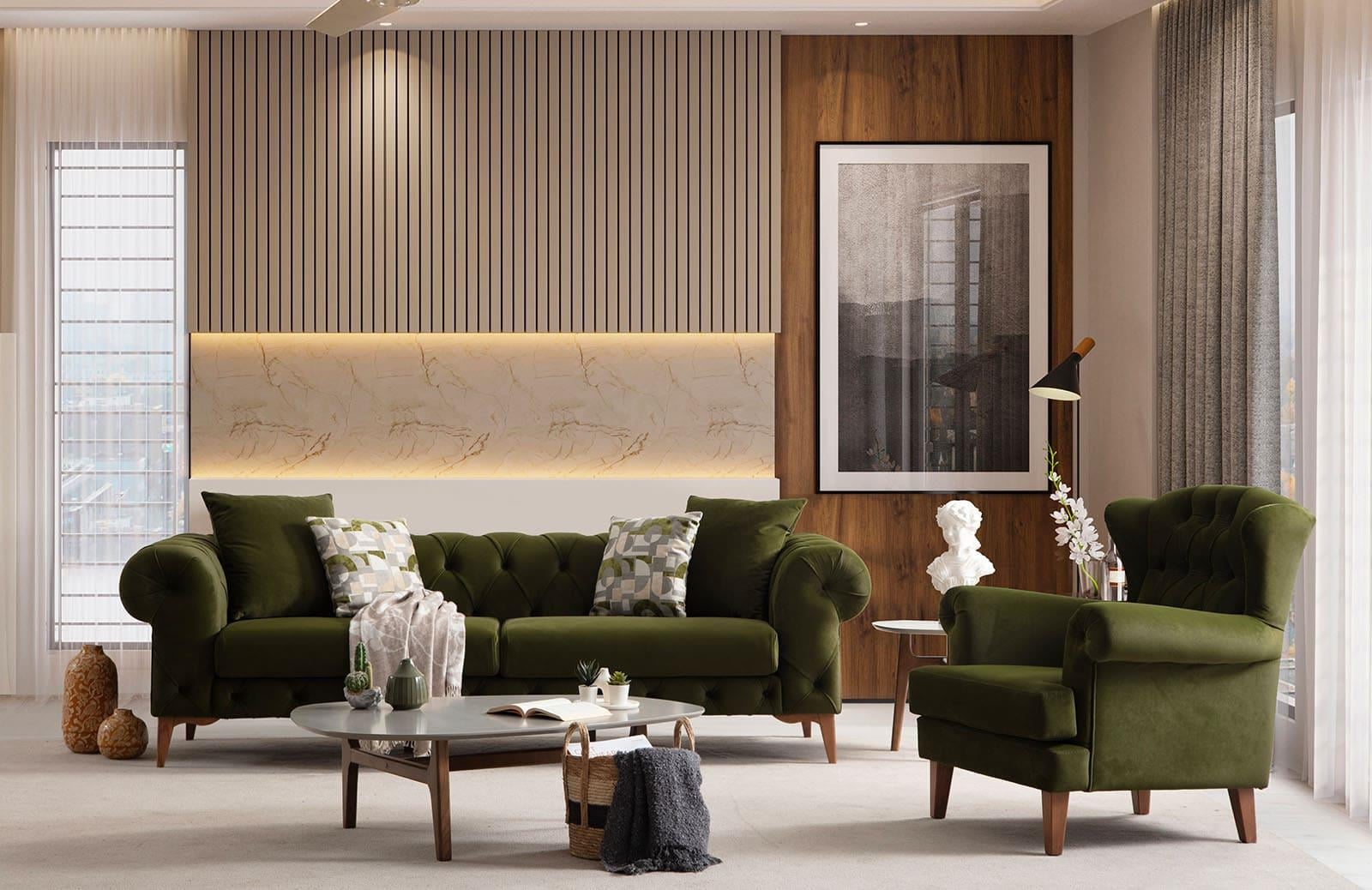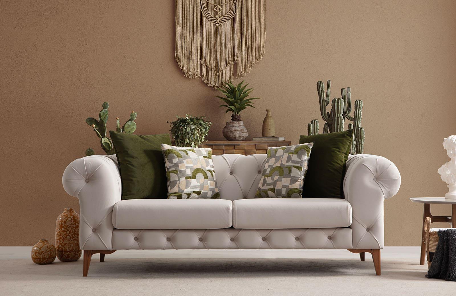 Misafir odası takımları arasında da dikkat çeken bu ürün, rahat oturum özellikleri ve estetik tasarımıyla misafirlerinizi ağırlamak için mükemmeldir. Kırlentleri dahil olarak sunulması, konforu artırır.