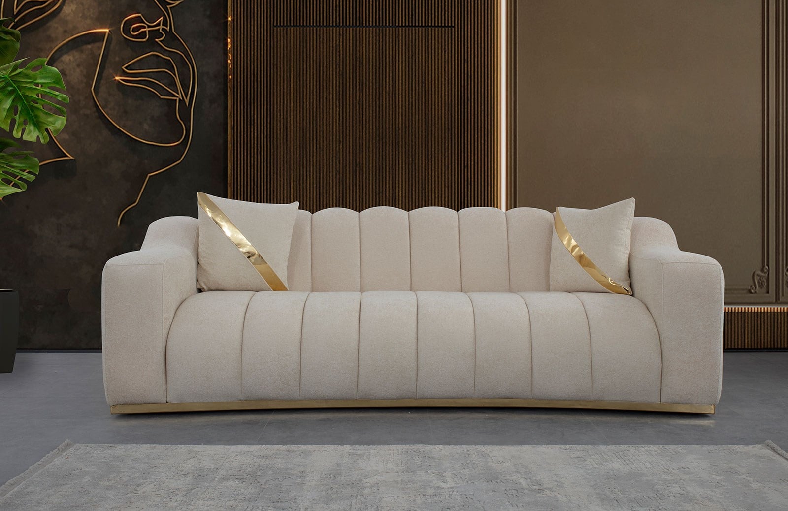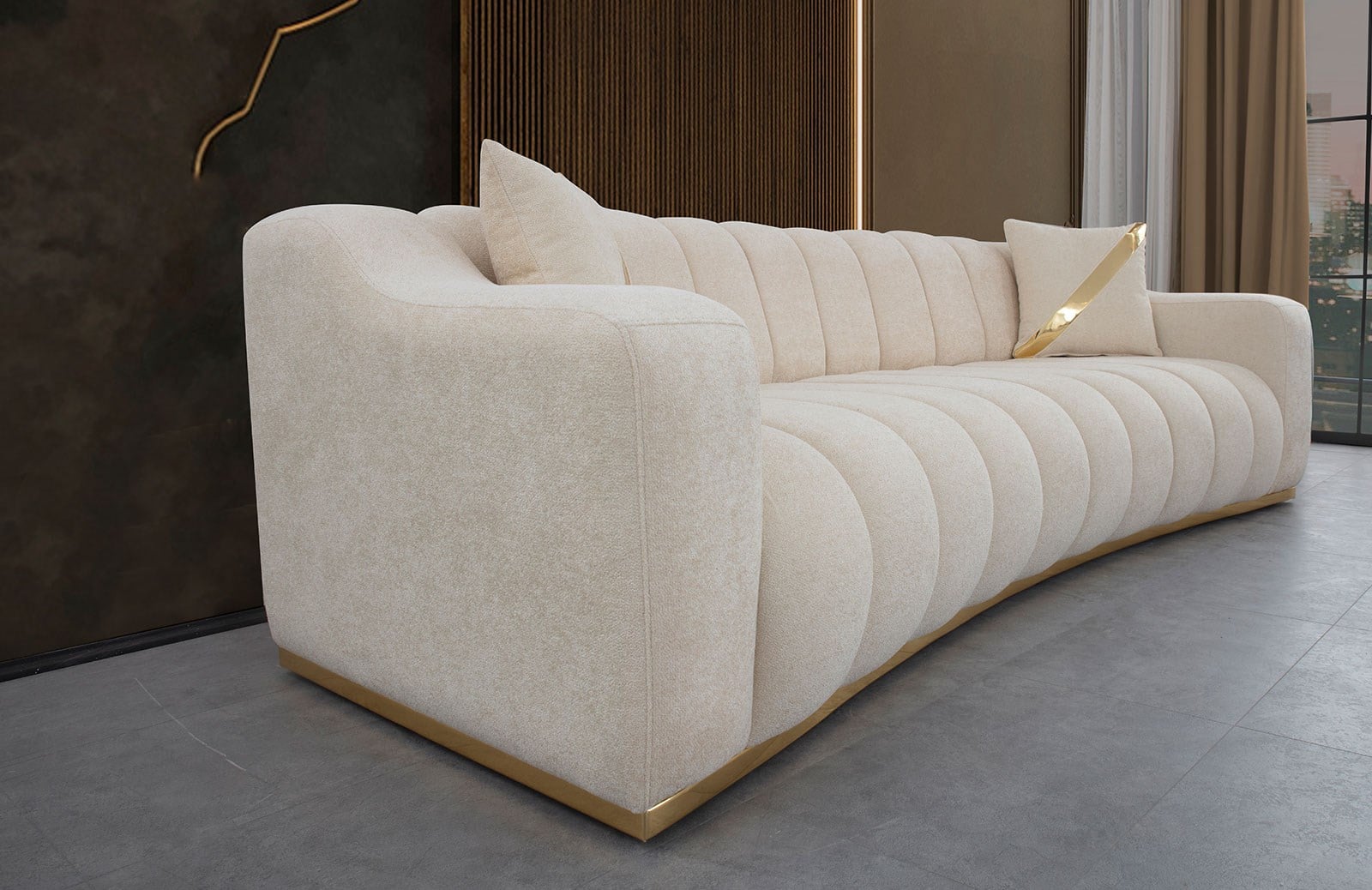 Keann dörtlü koltuk, son dönemin modern mobilya modasını üzerinde taşıyan benzersiz bir tasarımdır. Dikey çizgileri sayesinde en beğenilen mobilyalar arasındaki yerini alan Keann dörtlü koltuk, yumuşak hatlara sahiptir. Açık rengi ile ferah bir görünüm sunan ürün, birinci sınıf malzemelerden üretilir. Bulunduğu her alana yenilikçi ruhunu yansıtır. Benzersiz tarzı ile sıradanlıktan uzak bir dekorasyona zemin hazırlar. İmalat aşamasında her detayı özenle tasarlanır ve sizlere sunulur. Keann koltuk takımının özel parçalarından biri olup hem takım eşliğinde hem de tek başına tercih edilebilir. Keann dörtlü koltuk, şıklığın ve kalitenin en iyi şekilde harmanlandığı eşsiz tarzı ile yeni sahiplerini bekliyor.