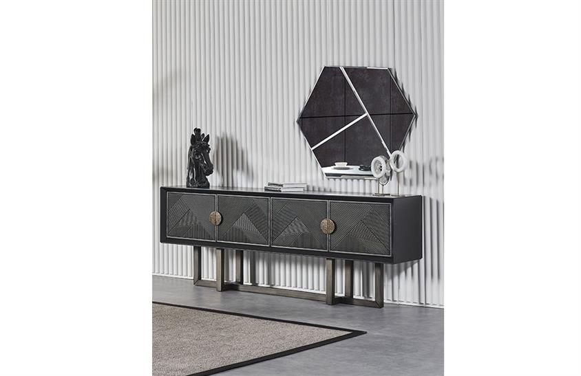 Lancelot Yemek Odası Takımı, Konsol üzerinde bulunan duvara asılı siyah renkli aksesuar olarak kullanılmıştır takım içeriğine dahil değildir. Konsol aynası resmini diğer resimlerde görebilirsiniz. Detaylı bilgi için satış temsicinize ulaşabilirsiniz. Şık bir masa etrafında sevdikleriniz ile unutulmaz vakitler geçirmek istiyorsanız Lancelot yemek odası takımına anında sahip olun! Masa, konsol, konsol aynası ve 6 adet sandalyeden oluşan, işlevselliği ile dikkatleri üzerine çeken Lancelot yemek odası takımı, uzun ömürlü bir yapıya sahiptir. Farklı kombinasyonlar ile tercih edebileceğiniz bu özel tasarım, birinci sınıf malzemelerin kullanıldığı özel bir üretim sürecinden geçer. Karakteristik ve stil sahibi yaşam alanlarındaki yerini daima korur. İmalat sürecinde sağlığa zararlı hiçbir madde kullanılmaz. Büyük bir özen ile tasarlanarak sizlere sunulur. Aileniz ve sevdikleriniz için en güzel yemeklerinizi paylaşacağınız her dakikayı Lancelot yemek odası takımı ile taçlandırın.