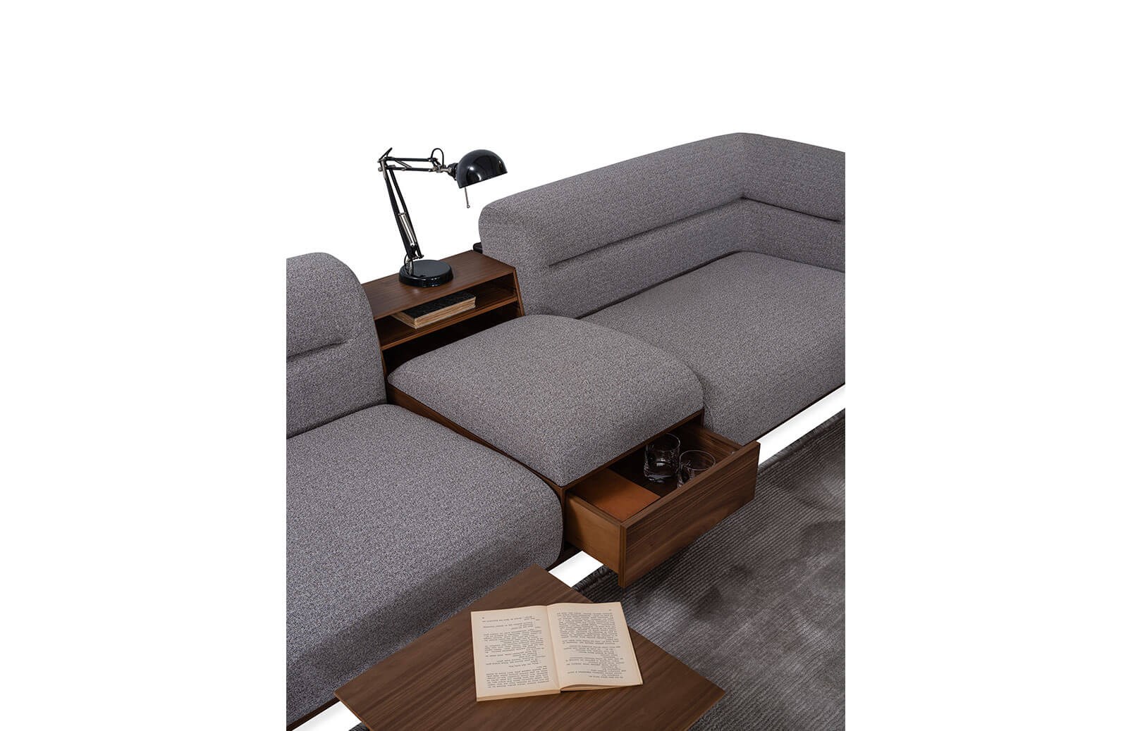 Lisaa Üçlü Kolsuz Sağ Sehpalı Modül -C227 cm 93 cm 70 cm