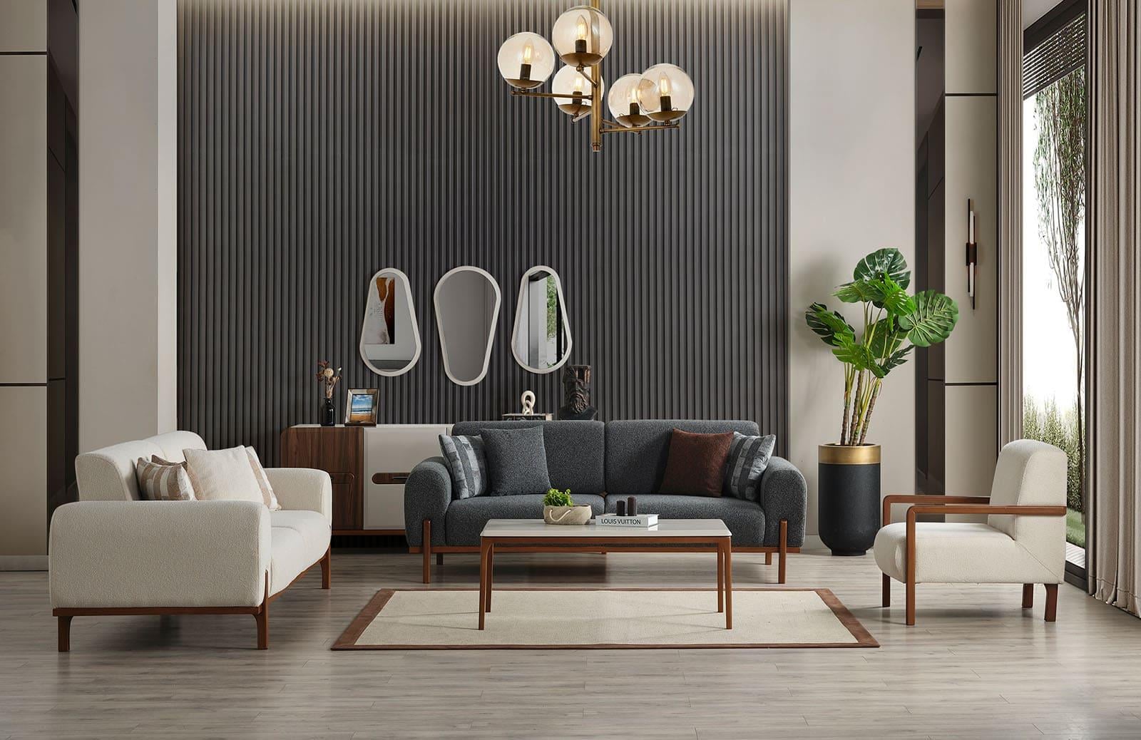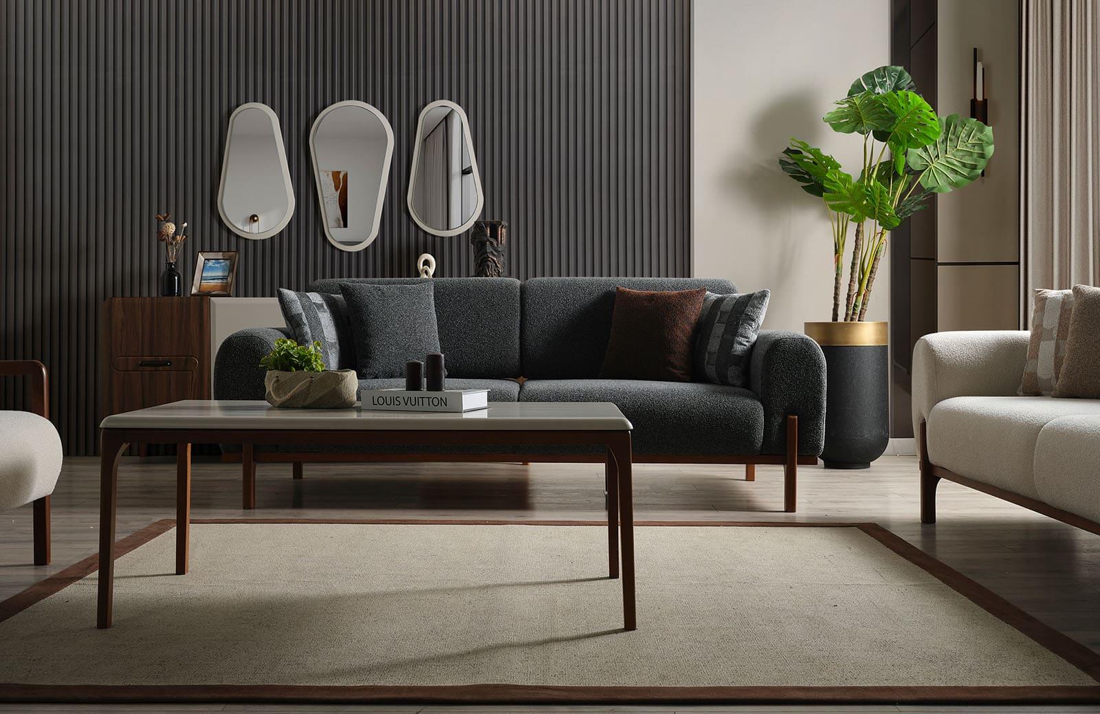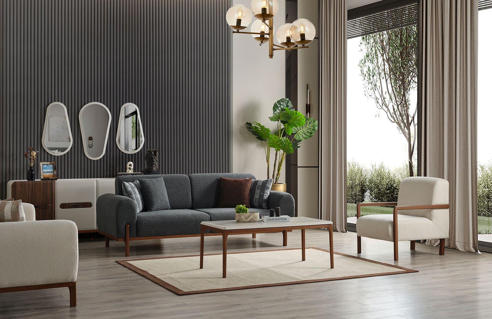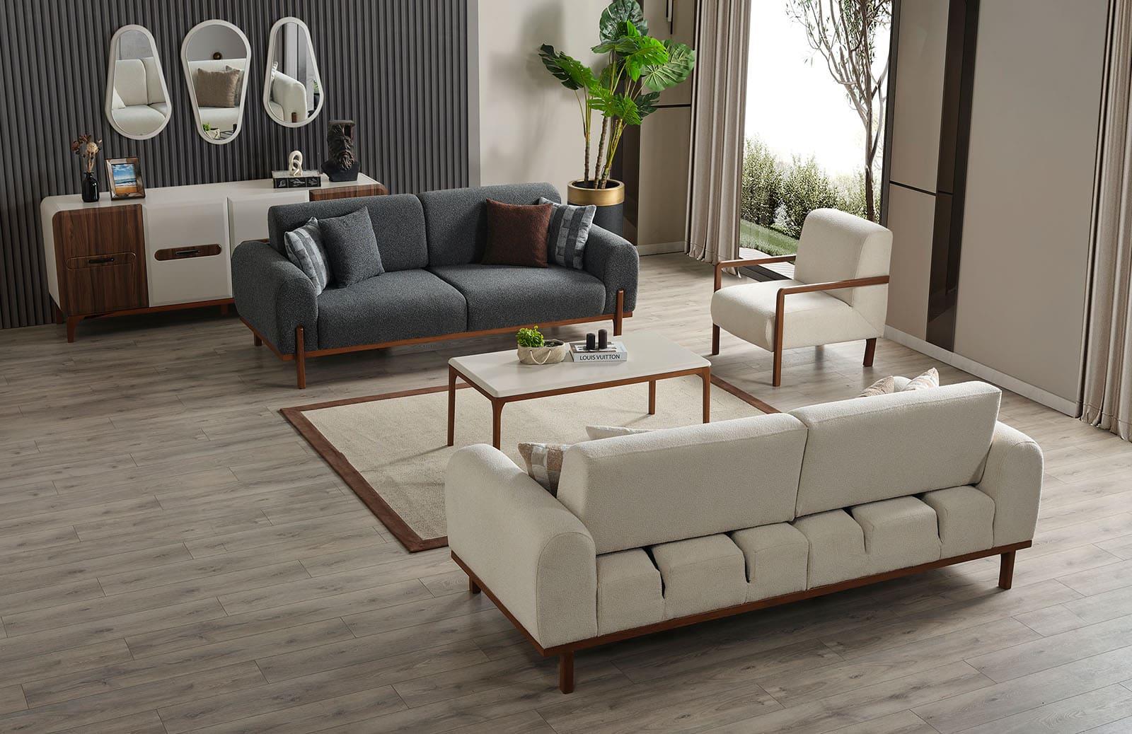 Modern tasarımı ile dikkat çeken oturma odası takımı, evinize şıklık katacak. Üretim durumu sipariş sonrası üretim olup, özel ölçü seçeneği ile de kişiselleştirebilirsiniz.