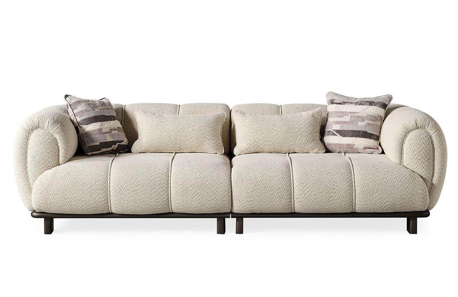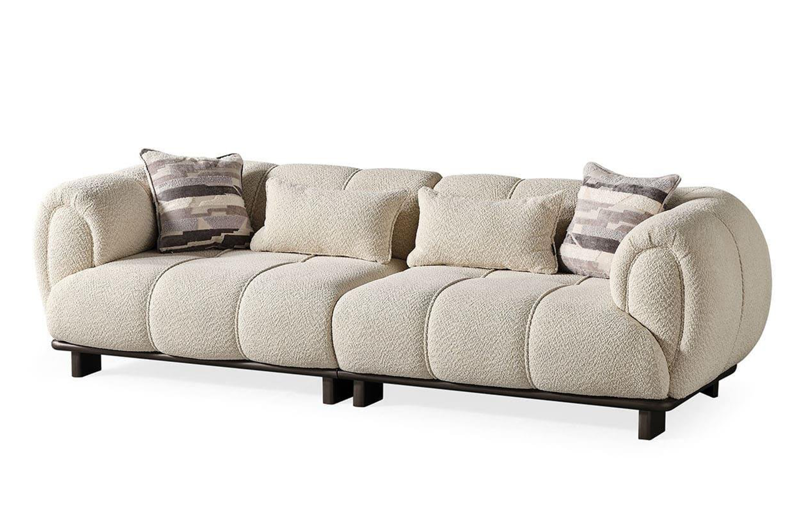 Üçlü koltuk modelimiz, modern tasarımıyla oturma odanıza şıklık katacak. Rahat oturum yapısı ve sabit minderleriyle konforu ön planda tutuyor. Kumaş cinsinin dokuma olması, dayanıklılığı artırıyor ve estetik bir görünüm sağlıyor.