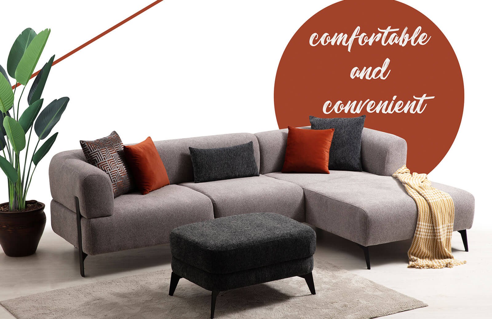 Lotte Köşe Üçlü Modül 180 cm 95 cm 77 cm