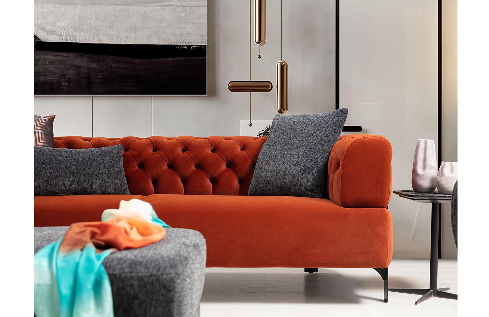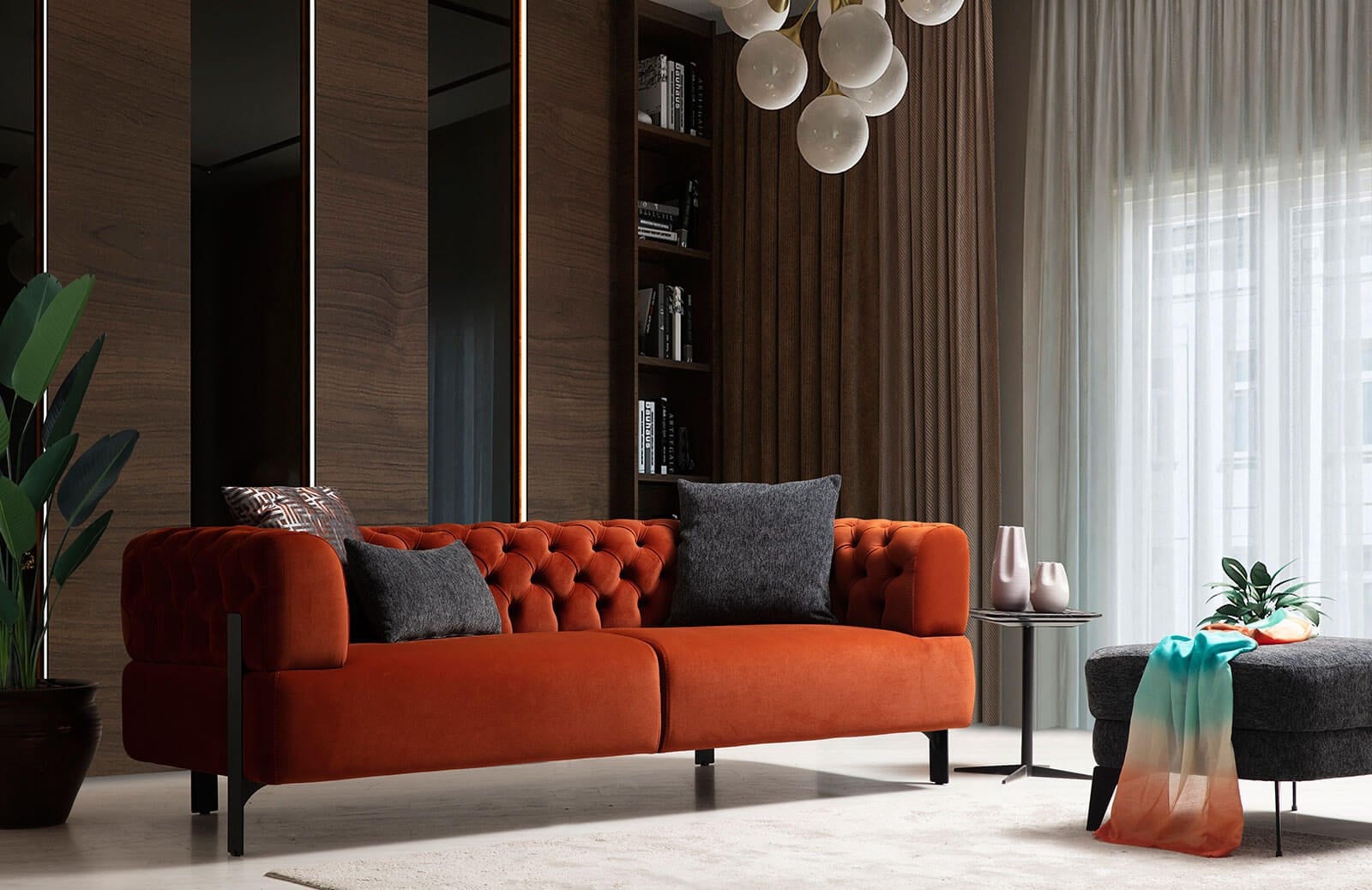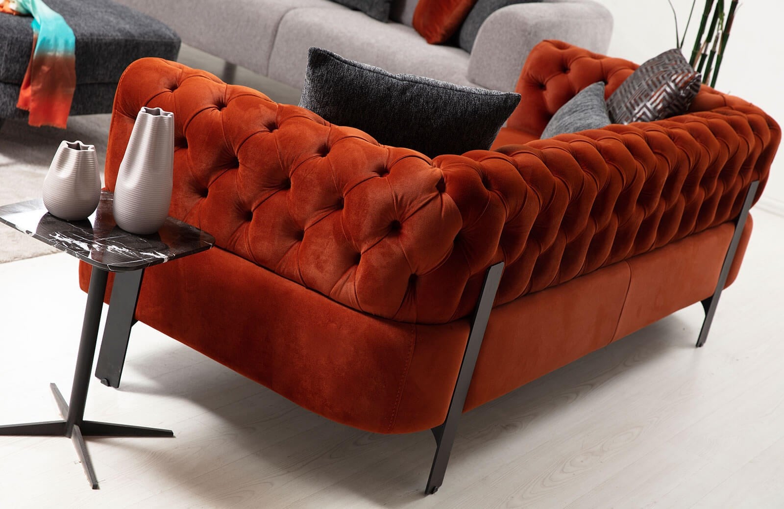 Lotte Üçlü Koltuk Kapitoneli 227 cm 95 cm 77 cm