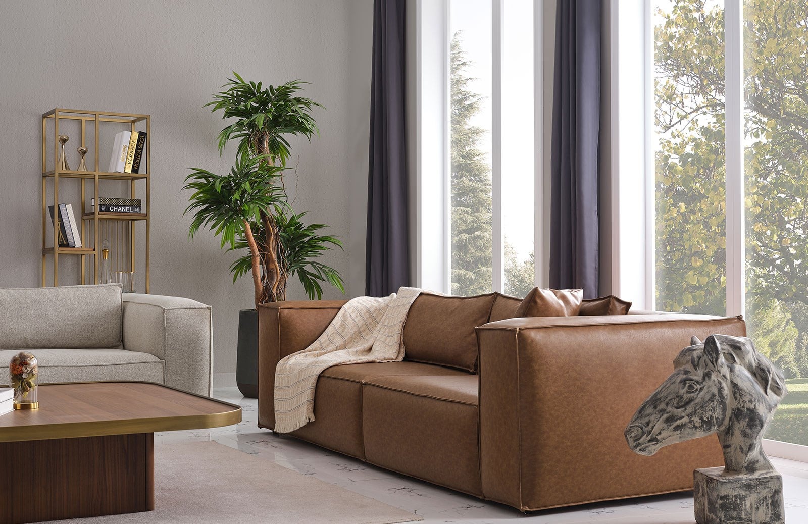 Renk kombinasyonu ile sıcak ve samimi bir yaşam alanına zemin hazırlayan Lucys koltuk takımı, tamamen birinci sınıf malzemelerin yer aldığı bir üretim sürecinden geçer. Lucys koltuk takımında, 2 adet üçlü koltuk ve 1 adet berjer bulunmaktadır. Dilerseniz bu kombinasyonu evinize en uygun kombinasyon ile değiştirmeniz mümkündür. Takımda, dokuma ve nubuk kumaş kullanılır. 32 dns exforta + visko karışımın kullanıldığı bir oturum minderine sahiptir. Gövdesi ise kayın ağacının sağlamlığı ile üretilir. Kısacası her detayı ile kullanıcıların ihtiyaçlarına ve isteklerine cevap verir. Sipariş sırasında kumaş ve renk seçeneklerini değerlendirerek, gerçekleştirmek istediğiniz dekorasyona hızlı bir şekilde sahip olabilirsiniz. Lucys koltuk takımının uzun seneler dayanıklı yapısı ile yaşam alanınızı baştan sona yenilemenin tam sırası!