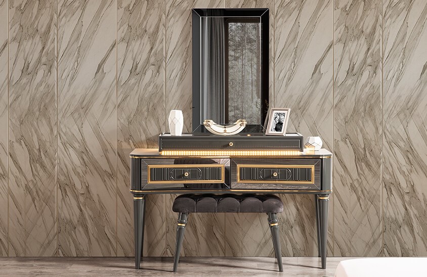 Koyu renk mobilyaları sevenlere hitap eden tasarımı ile Luysa Yatak Odası Takımı modeli şık bir dizayn sunuyor!