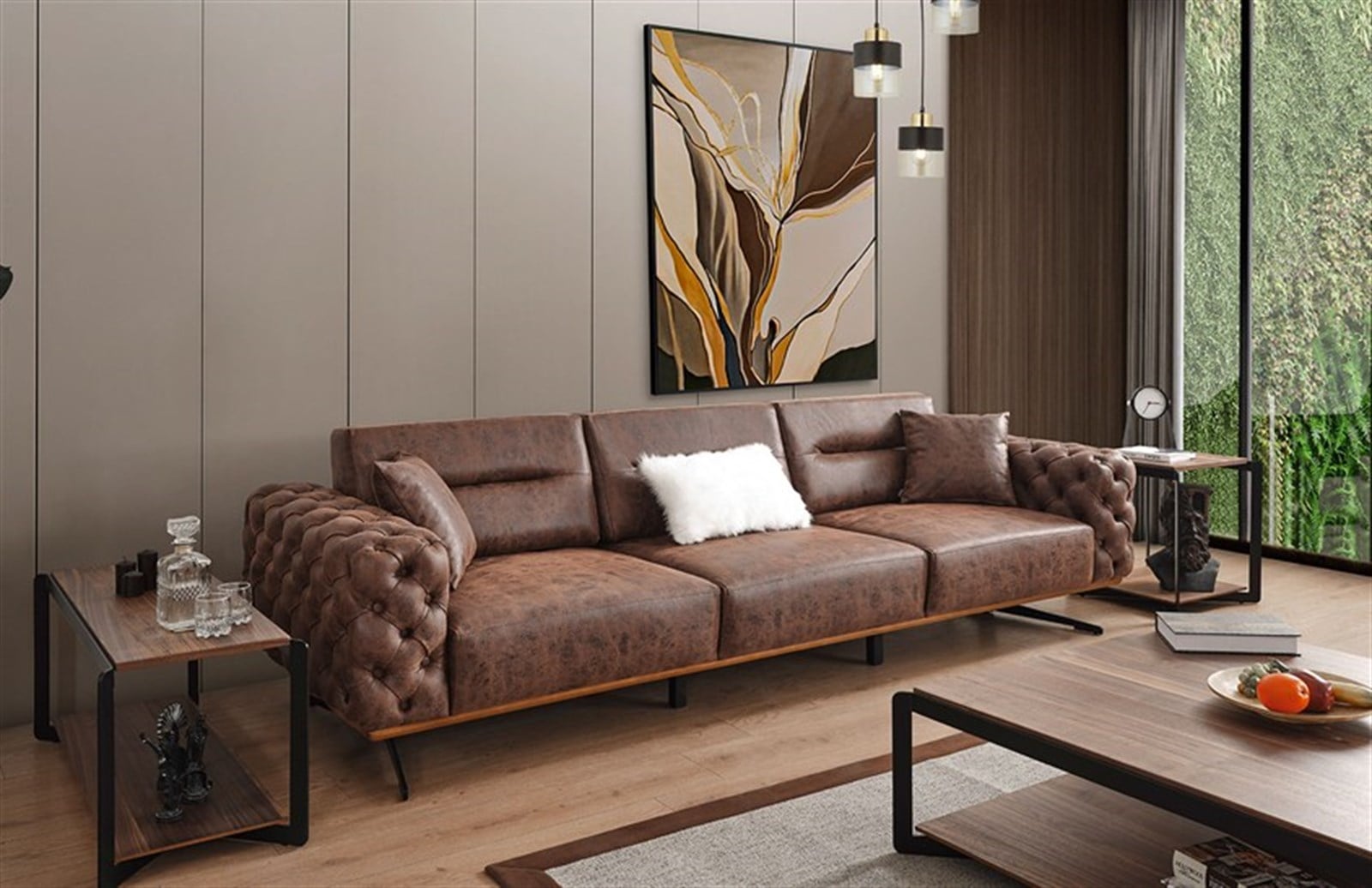Geniş oturum alanı ile konforlu bir deneyim sunan Marisela dörtlü koltuk, her şeyin sizler için düşünüldüğü özel bir tasarımdır. Kol kenarları kapitone düğmeler ile hareketlendirilen Marisela dörtlü koltuk, yerden yüksek ayaklara sahiptir. Nubuk kumaşı, silinebilir yapısı ile temizliği pratik hale getirir. Ürün, Marisela koltuk takımının en özel parçalarından biridir. Hem takım eşliğinde hem de tek başına tercih edilebilir. İmalatı sırasındaki her detay, konforunuz düşünülerek tasarlanmıştır. Sırt genişletme mekanizması ile konforlu yapısını arttırır. Marisela dörtlü koltuk, her gününüzü özel kılacak benzersiz bir deneyimi sizlere sunmaya devam ediyor.