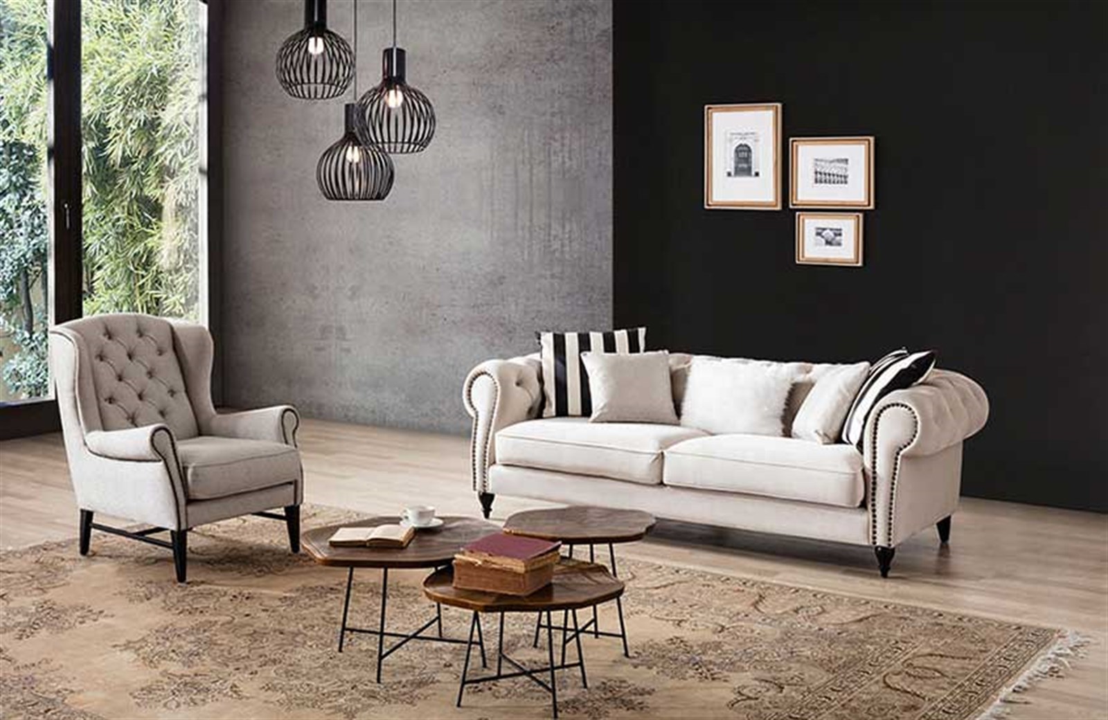 Marissa Koltuk Takımı ile zarafet ve konfor evinizde. Şık kapitone detayları, kolçak kenarlarında yer alan işlemeli taş detaylar ve oval kesim ayak tasarımı ile zarafetin şıklığını sunuyor. Üretiminde mdf ve hazır malzeme kullanılan takım, yay içermeyen yapısıyla da uzun ömürlü bir kullanım sağlıyor. Renk ve ölçü değişikliği ile evinize en uygun seçimleri yapabilir, şık aksesuarlar ve kırlentlerle de kişisel zevkinizi ön plana çıkarabilirsiniz. Ayrı ayrı da satın alabilirsiniz.