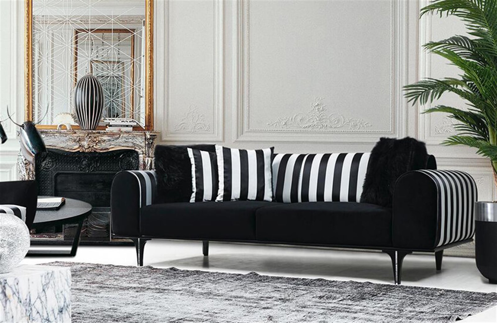 Sade tasarımları sevenlere özel olarak tasarlanan Monday Koltuk Takımı modeli hem rahat hem de her dekorasyon tarzına uyum sağlıyor. Desenli ve düz 2 adet üçlü koltuk ile 1 adet tekli koltuktan oluşan koltuk takımı modeli geniş kolçak alanlarına sahip. İki parça yaysız yumuşak süngerden oluşan oturma alanları ile konforu evinize taşıyan model aynı zamanda istenilen renk ve kumaş seçeneklerine de sahip. Yüksek kolçak ve geniş arkalık alanı ile ön plana çıkan berjer modeline de sahip olan koltuk takımı uyum içinde bir dekorasyon zevki sunuyor.