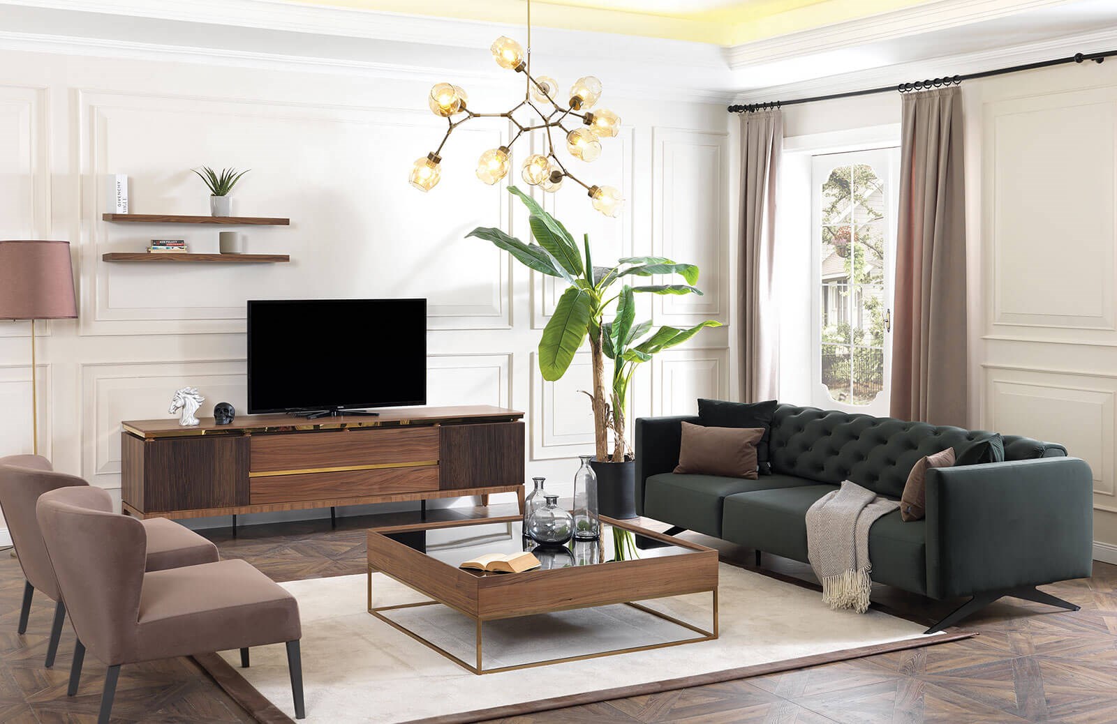 Yeni bir tv ünitesine ihtiyacınız varsa Monela tv ünitesi ile evinizin tarzını tamamlayabilirsiniz. Tv sehpası ve üst bloktan oluşan Monela tv ünitesini standart kombinasyonu dışında farklı bir kombinasyon ile tercih edebilirsiniz. Tv ünitesinin yapımında mdf kaplama ve Amerikan ceviz kaplama kullanılmaktadır. Kalitesinden asla ödün vermeyen üründe sağlığa ve çevreye zararlı hiçbir madde yer almaz. Kapaklarında yavaşlatıcı mekanizmaya yer verilerek kullanım kolaylığı sağlanmıştır. Bu özelliği ile uzun ömürlü yapısı da korunmuştur. Monela tv ünitesinin modern tasarımı sayesinde evinizin kalitesini bir üst seviyeye çıkarabilirsiniz.