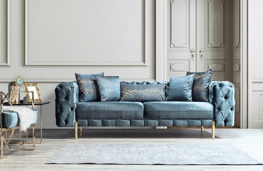 Napea Koltuk Takımı, şıklığı ve konforu bir arada sunarak, oturma odalarınızı mükemmel bir şekilde tamamlar. Parlak kadife kumaşı, mekânınıza zarif bir dokunuş katarken, ihtiyaca göre seçilebilen kumaş opsiyonları sayesinde kişisel zevkinize uygun bir tasarım oluşturulabilir.