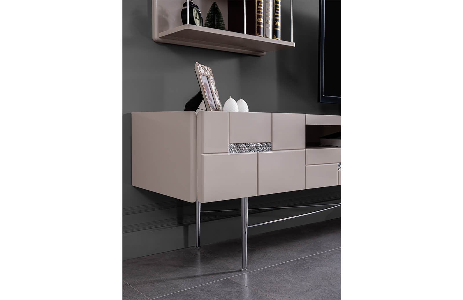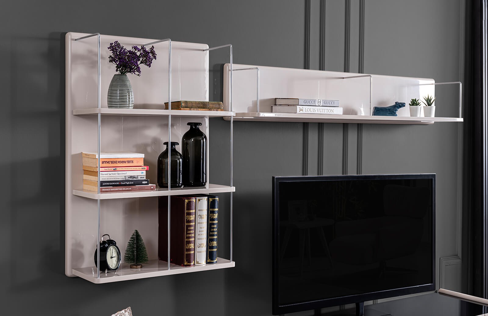 Yerden yüksek metal ayakları ile modern bir tasarıma sahip olan Niltan Tv Ünitesi modelini her dekorasyon tarzı ile kullanabilirsiniz. Çizgi detayları ile farklı bir dizayn sunan tv ünitesi modeli tv sehpası ve üst bloktan oluşmaktadır. Minimal bir tasarıma sahip olan duvar üst blok bölümü 6 raf olarak tasarlanmıştır. Geniş saklama alanlarına sahip olan tv sehpasında ise açık raf alanı da bulunmaktadır. Siz de sade tasarımı ile Niltan Tv Ünitesi modeline Engince Mobilya kalitesi ile sahip olabilirsiniz.