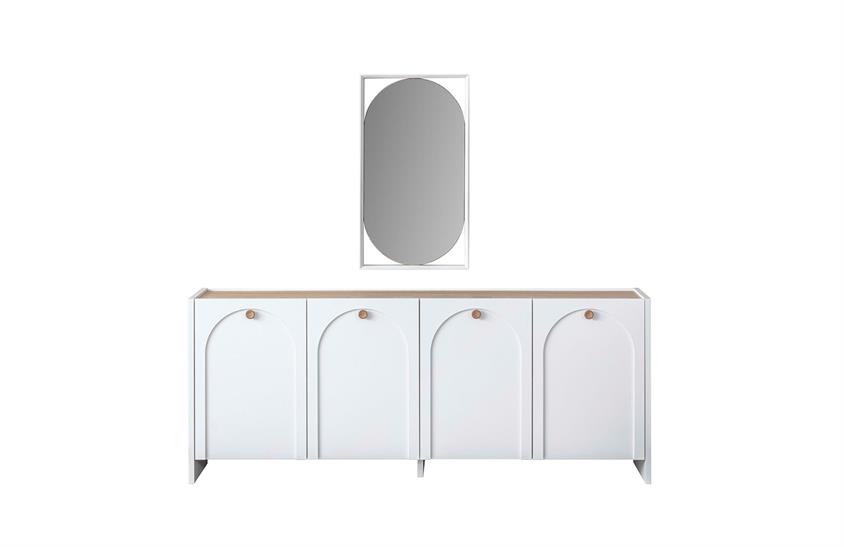 Nina Yemek Odası Takımı, Kırık beyaz ve meşe renklerinin uyumlu bir şekilde bir araya geldiği bohem yemek odası takımıdır. Modern yemek odası takımını da yansıtan Nina, farklı dekorasyon parçaları ile evinizin yıldızı olmaya hazır. Nina Yemek Odası Takımını set şeklinde alabileceğiniz gibi sadece yemek konsolu, yemek masası, sandalye olarakta ayrı ayrı alabilirsiniz. Özellikle görseldeki beyaz yemek masası ve meşe ayaklar kombinasyonu, mekana şık ve doğal bir hava katmaktadır.