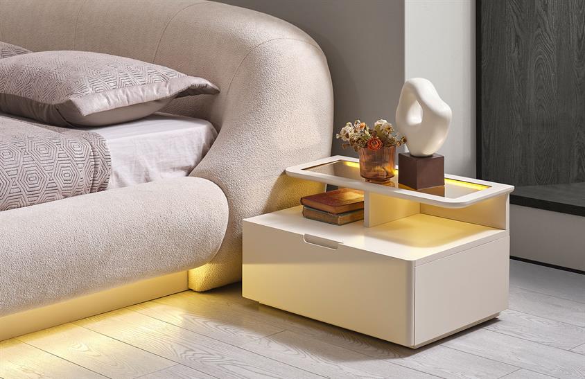 Noa yatak odası, şıklığı ve zarafeti bir arada sunan modern bir tasarıma sahiptir. Ürün malzemesi olarak, dayanıklı ve estetik görünüme sahip nervürlü cam kapaklar ve sağlam yonga levha kullanılmıştır. Nervürlü cam, hem şeffaf hem de estetik bir dokunuş sağlar, odanın ışık almasını ve ferah görünmesini destekler. Yonga levha ise, uzun ömürlü ve stabil bir yapı sunarak, yatak odasında kullanım kolaylığı ve güvenilirlik sağlar. Bu tasarım, sade ve zarif detaylarıyla yaşam alanınıza modern bir hava katar.