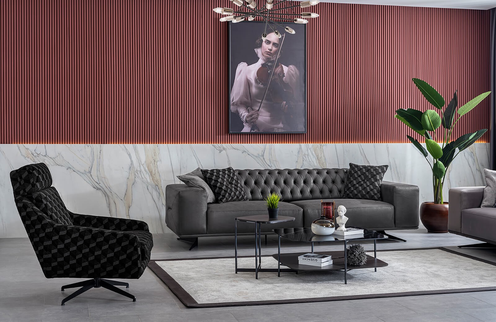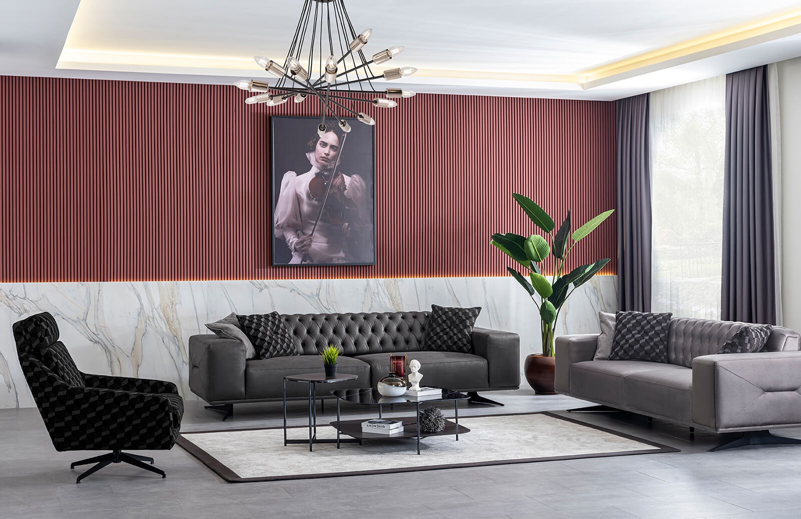 Modern tasarımı ile dikkatleri üzerine çekmeyi başaran Olani koltuk takımı, kalite standartlarında üretilmektedir. Sipariş sonrası üretimi gerçekleştirilen Olani koltuk takımı; 1 adet üçlü koltuk, 1 adet dörtlü koltuk ve 1 adet berjerden oluşmaktadır. Takım içeriğini farklı bir kombinasyonda değiştirebilirsiniz. Fırınlanmış gürgen ağacından üretilen koltuk takımının ayak malzemesi metaldir. Nubuk ve keten birinci kalite exclusive kumaş ile döşenmiştir. Berjer, mekanizmalıdır. Oturum minderlerinde 32 dns hr sünger kullanılmaktadır ve yay içermez. Olani koltuk takımını sipariş verirken kumaş ve renk değişimi yapabilir, ekstra kırlent seçiminde bulunabilirsiniz.