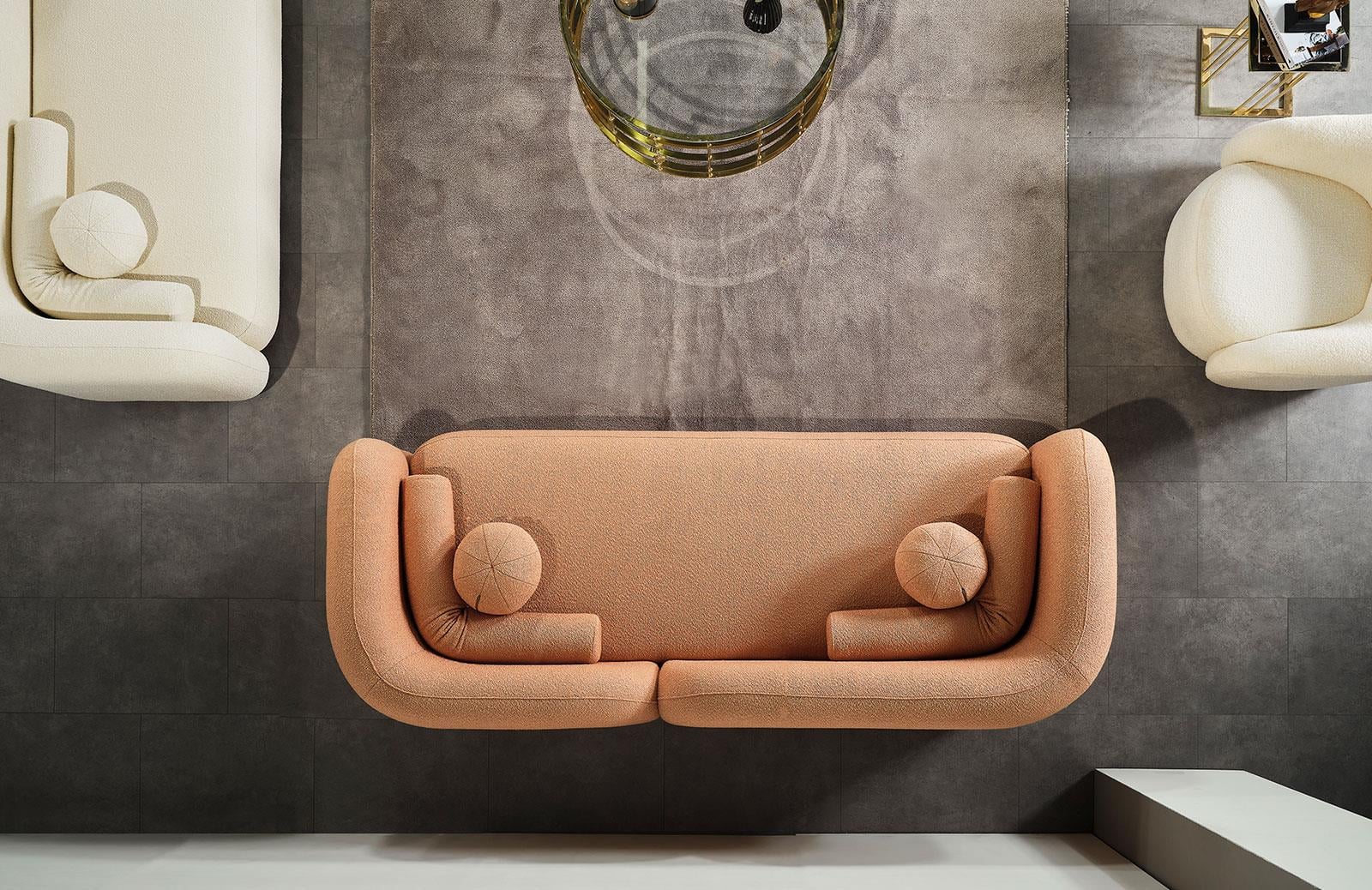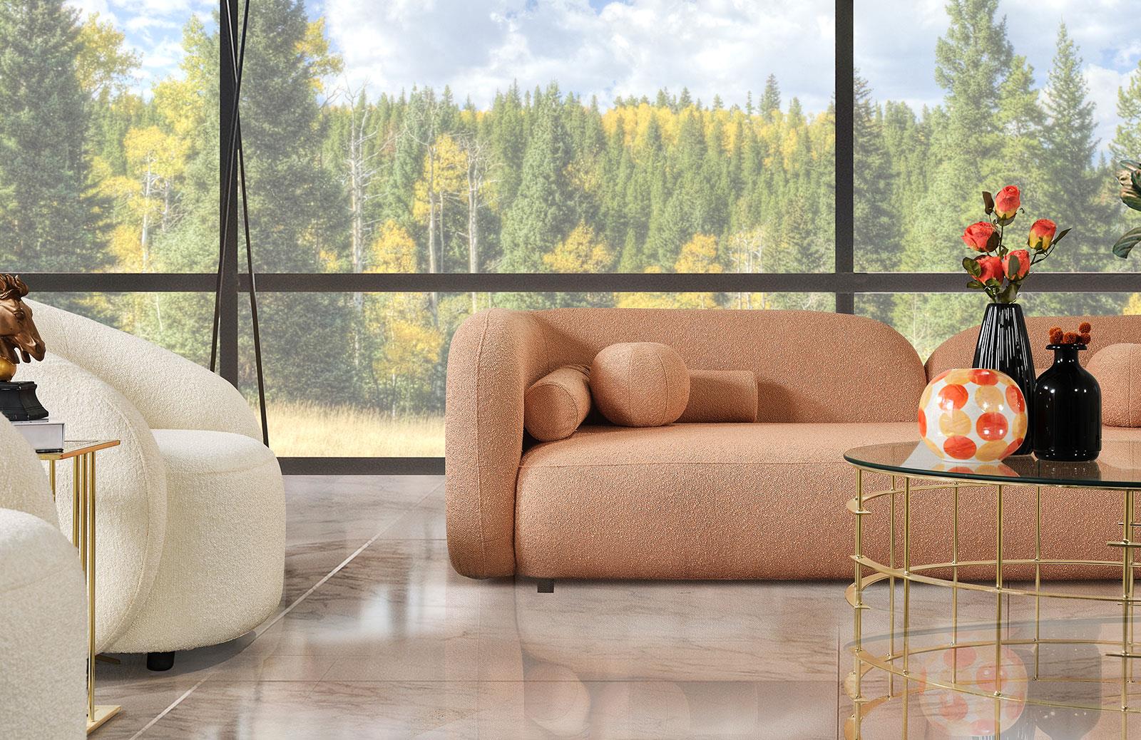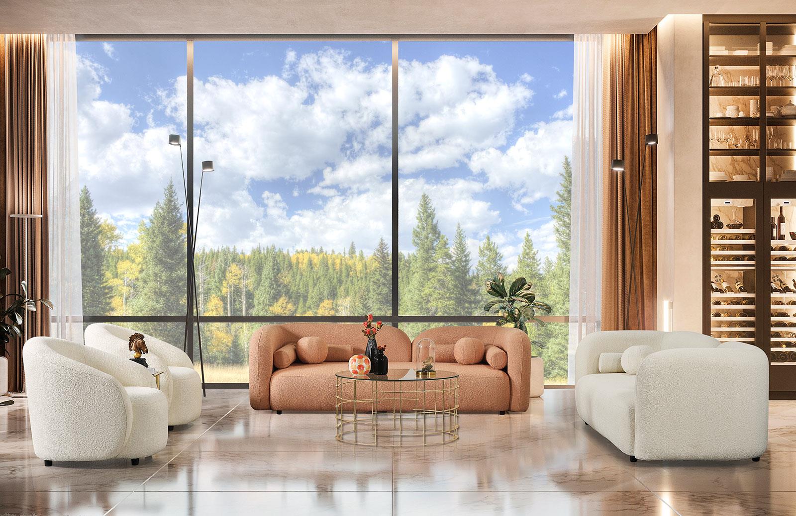 Modern tasarımıyla dikkat çeken oturma odası takımı, konforlu oturum yapısıyla evinize şıklık katıyor. Bukle kumaş seçeneği ile hem estetik hem de dayanıklı bir kullanım sunmaktadır.