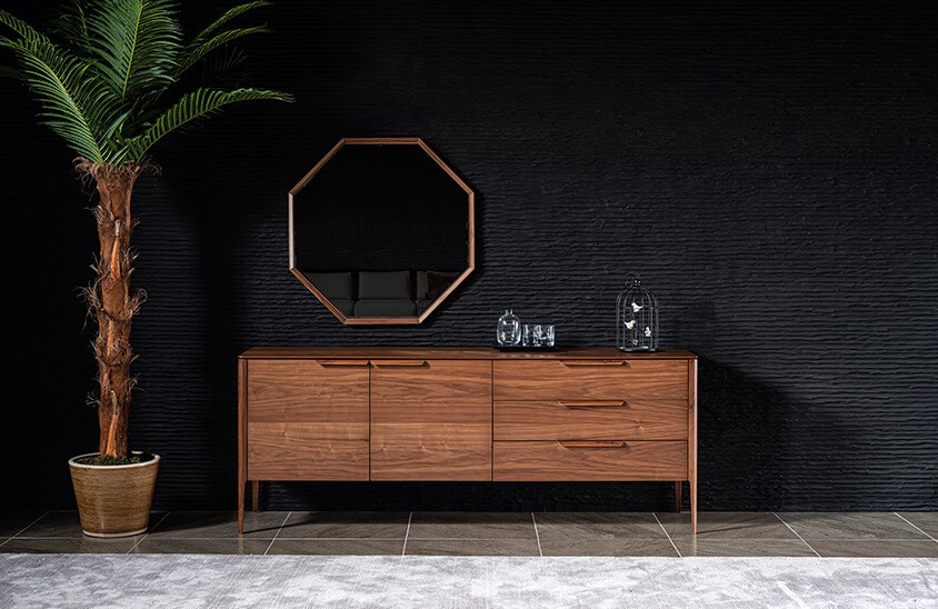 Ahşap mobilyaları sevenlere hitap eden Ready Yemek Odası Takımı modeli şıklığı doğallıkla birleştiriyor. Konsol, yemek masası ve sandalyelerinden oluşan takım tek tek de satın alınabiliyor. Konsol aynası görsel amaçlı kullanılmıştır. Takım içeriğinde yer almamaktadır. Çekmeceli ve kapaklı alanları ile saklama alanlarına da sahip olan konsol oldukça kullanışlı. Estetik tasarımı ile ön plana çıkan yemek masası en güzel yemek ziyafetleri için en doğru seçim olacaktır. Kolay montaj imkanı da sunan Ready Yemek Odası Takımı modeline siz de Engince Mobilya kalitesi ile sahip olabilirsiniz.