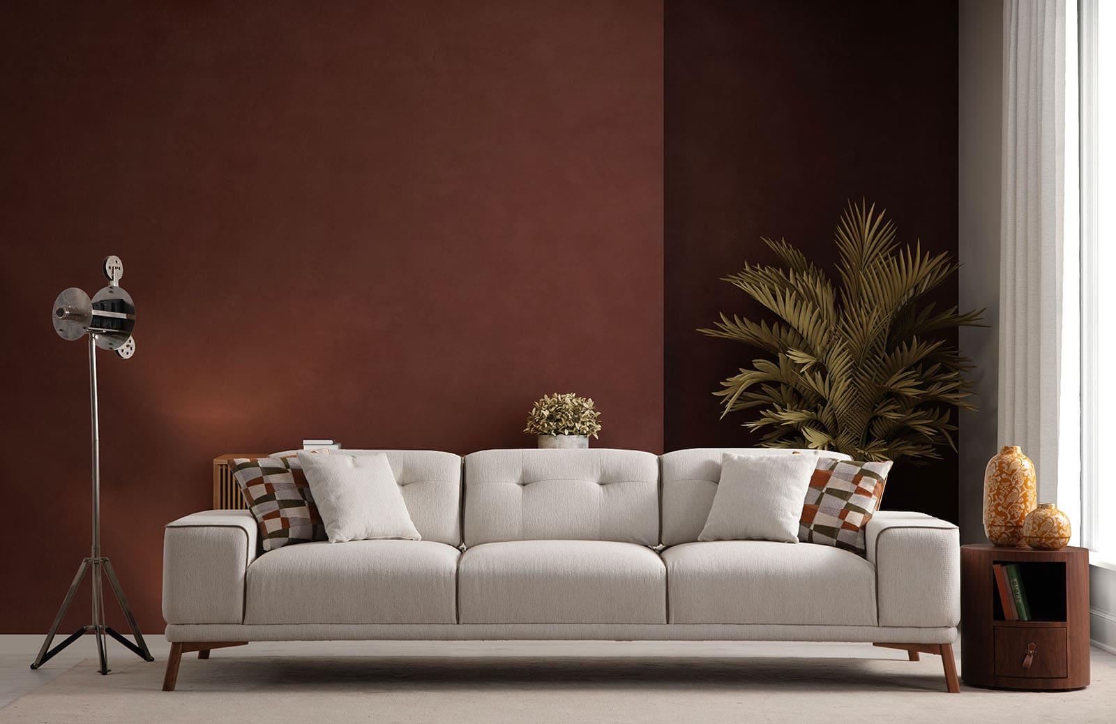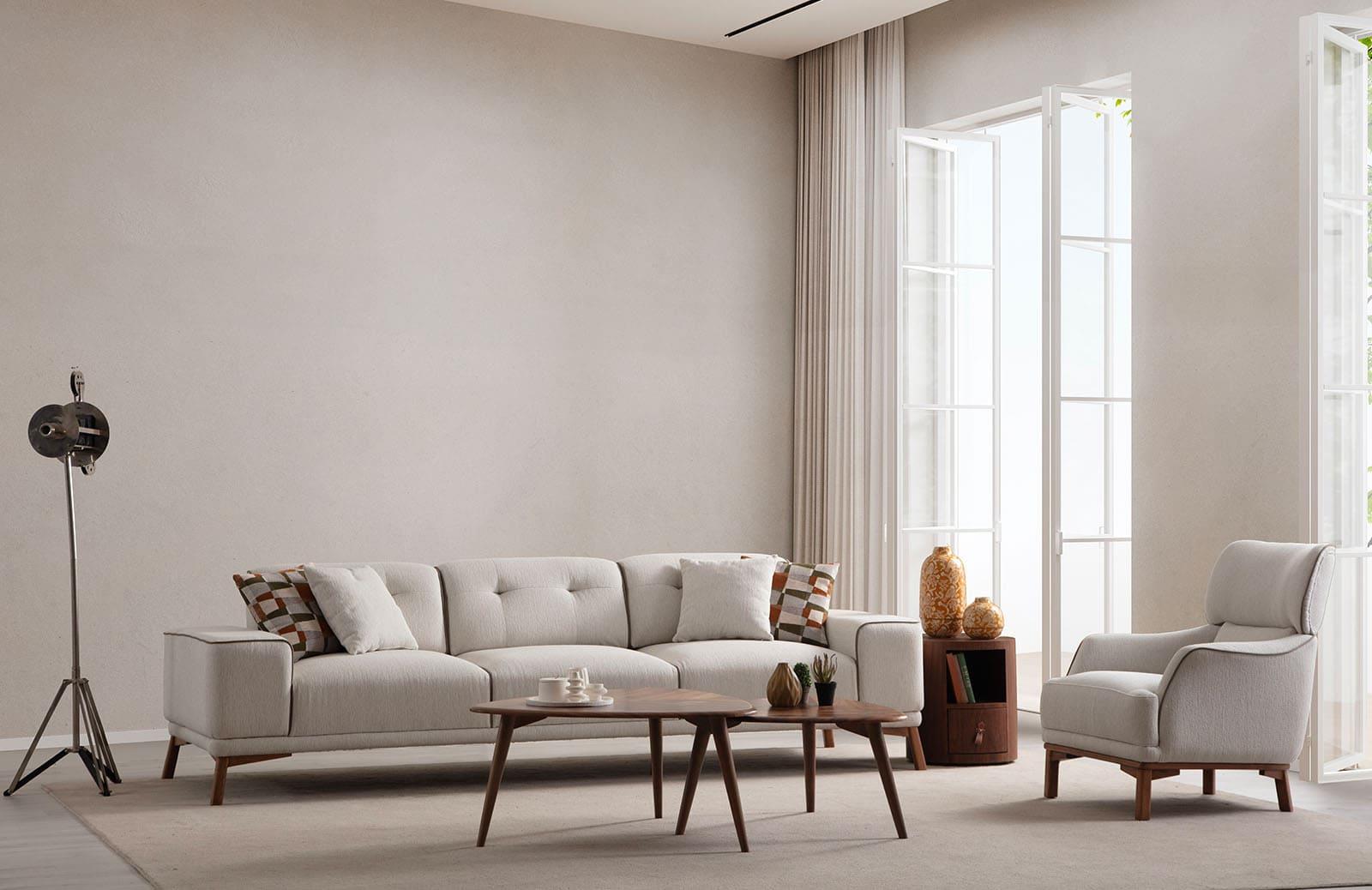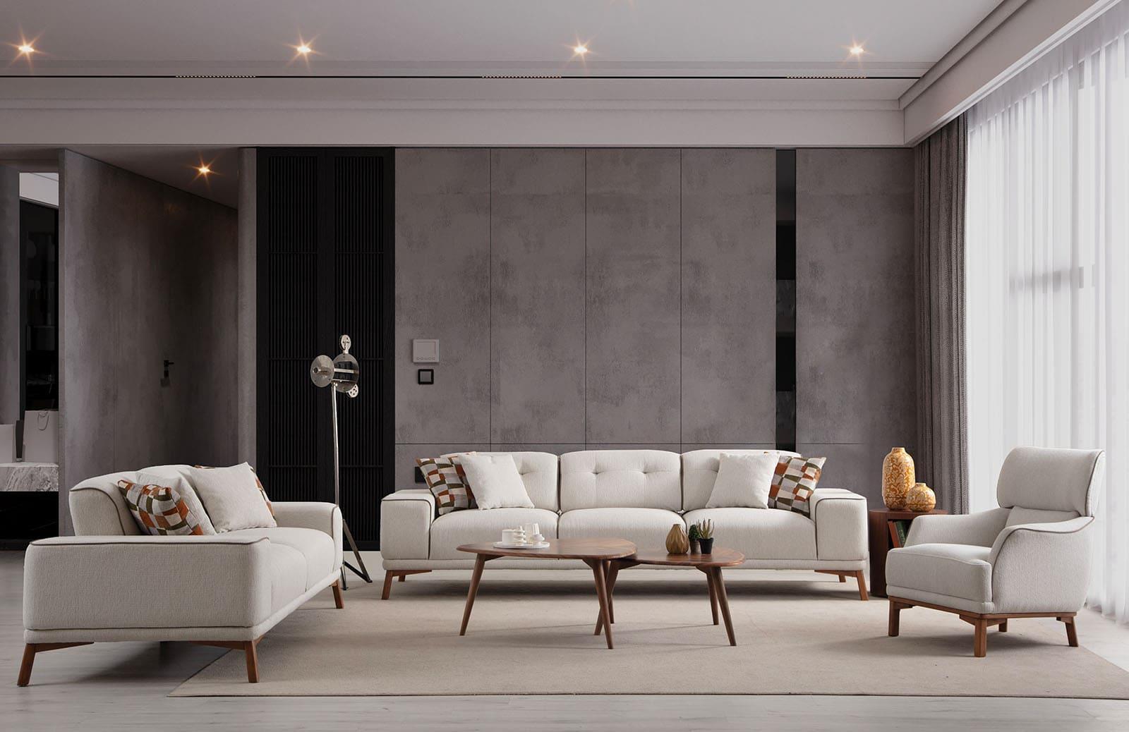 Modern tasarımıyla dikkat çeken bu oturma odası takımı, konforlu bir oturum sunarak evinize şıklık katıyor. Orta sert oturum yapısıyla uzun süreli kullanımda bile rahatlık sağlıyor.