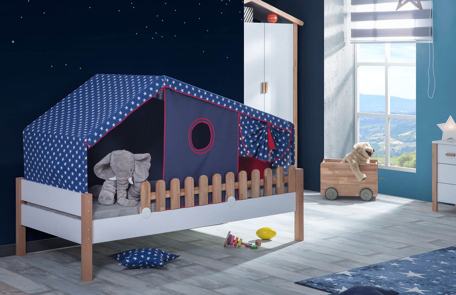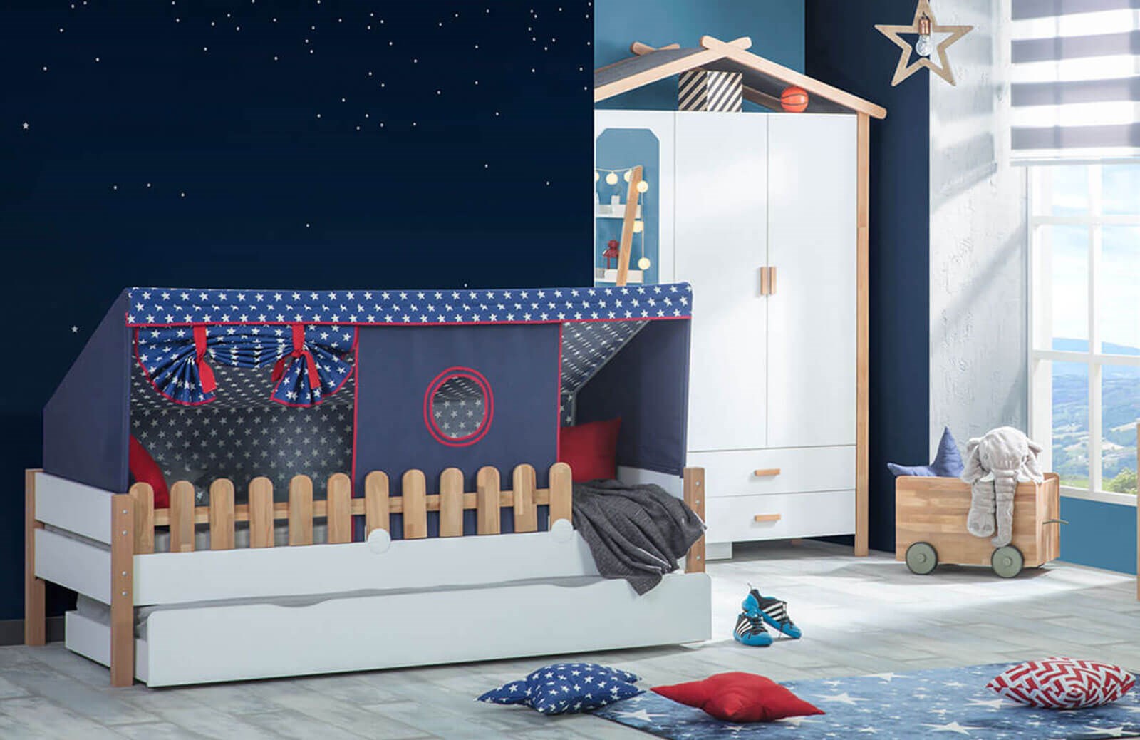 Star Ev Çadır Oyun Evi Karyola, takım içeriği Ev Çadır + Uzun Koruma Çit + Karyola 90*200 şeklindedir. Takım içeriğindeki çadır modelini değiştirebilirsiniz. Takım içeriğindeki uzun çit modelini kısa çit ile değiştirebilirsiniz. Takım içeriğindeki Karyola modeline ek olarak alt modül alıp karyolanızı ikiz karyola modeline çevirebilirsiniz. Takım Set Değiştir özelliği ile Oyun Evi modelinizi kendiniz tasarlayabilirsiniz.