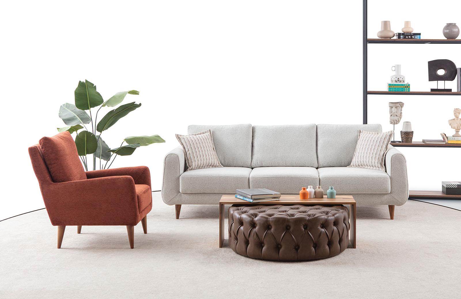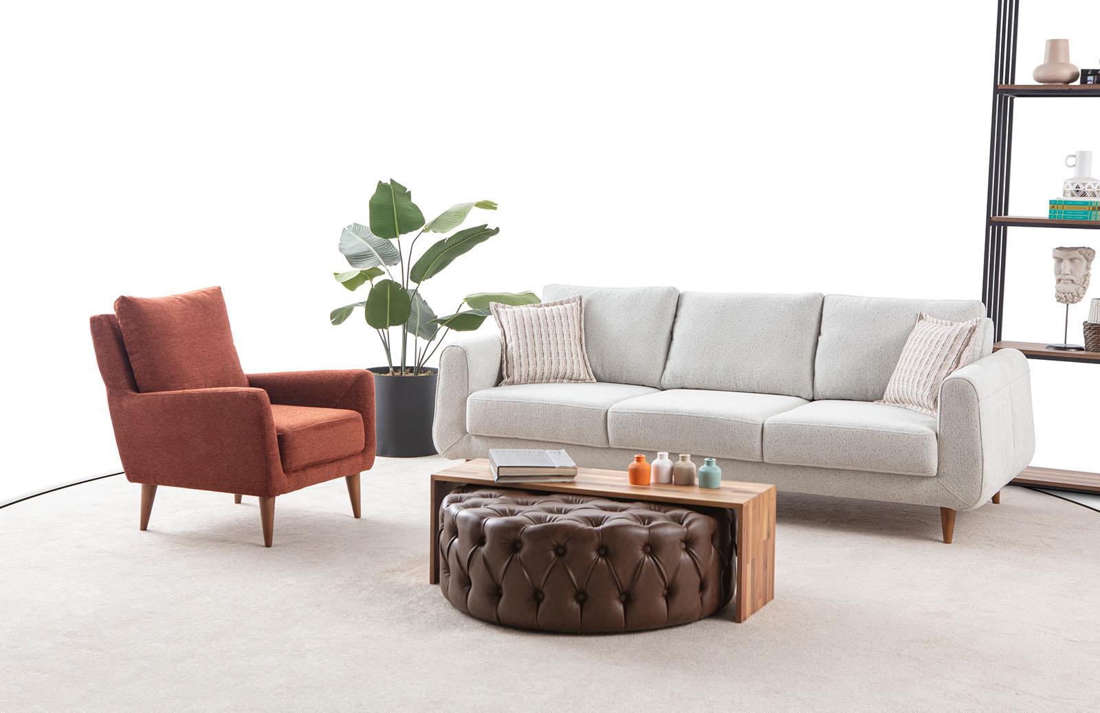 Stokes Koltuk Takımı, zarif ve doğal detaylarıyla yaşam alanlarına sıcaklık katan bir tasarım sunuyor. Yerden yüksek ayak tipi, hem modern bir görünüm hem de temizlikte pratiklik sağlarken, ceviz ayak malzemesi doğal ve şık bir dokunuş ekliyor. Dayanıklılığı ile öne çıkan ceviz ayaklar, koltuk takımına uzun ömürlü bir yapı kazandırırken, estetik çizgileriyle mekanınıza sofistike bir hava katıyor.