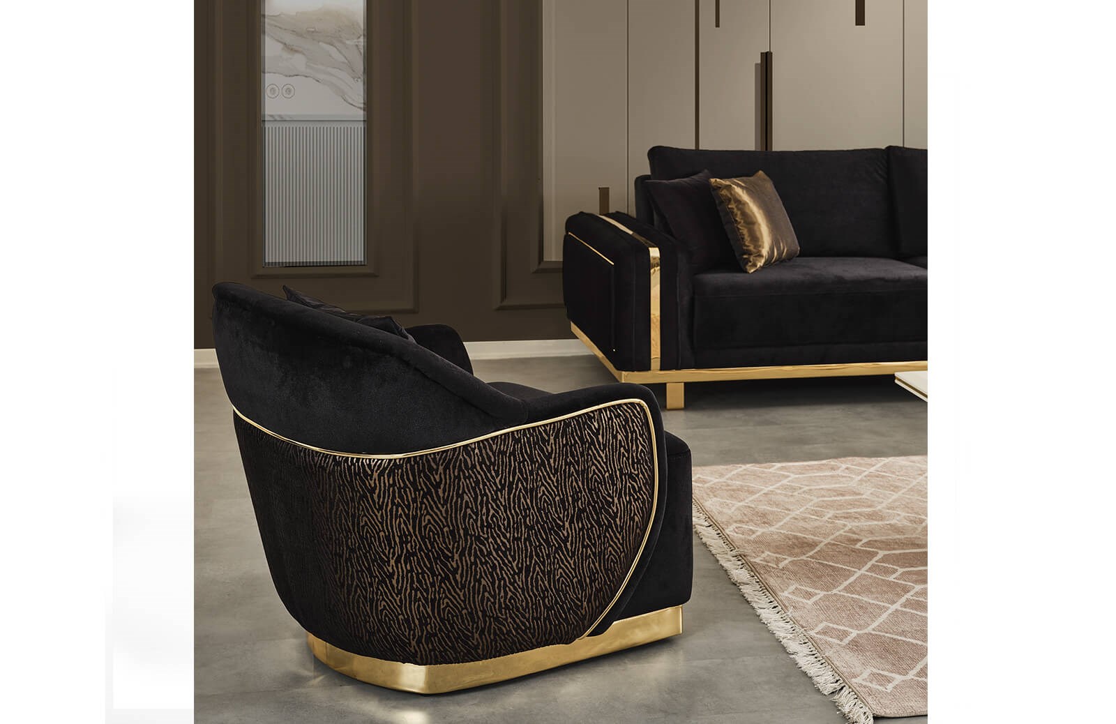 Karakteristik duruşu ile tarzını ortaya koyan Toman berjerin ayrıcalığını evinize yansıtmanın tam zamanı! Fırınlanmış gürgen ağacından üretilen Toman berjer; metal ayakları, yay içermeyen yapısı, kadife kumaşı, 32 dns hr süngeri ve konforlu sırt desteği ile yaşam alanınıza büyük bir yenilik dahil ediyor. Ürün, modern hatlarını görünür hale getiren renkleri ile yenilikçi dekorasyonlar için en ideal mobilyalardan biridir. Yere yakın ayaklarında gold rengin ışıltısı yer alır. Berjer, kuru temizleme için uygun değildir. Su ve beyaz sabun, temizlik için yeterlidir. Siparişiniz sırasında Toman berjerin kumaş ve renk seçeneklerinden yararlanmanız mümkündür.