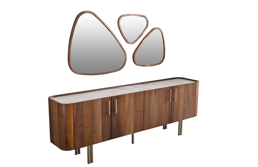 Vendula yemek odası takımı sayesinde en güzel yemeklerinizi aileniz ve sevdikleriniz ile paylaşmanın mutluluğunu yaşayabilirsiniz. Konsol, ayna, masa ve 6 adet sandalyeden oluşan Vendula yemek odası takımı, zengin içeriği sayesinde her ihtiyaca çözüm bulmaktadır. Bu takım; konsolun depolama alanları, yemek masasının genişliği ve sandalyelerin konforu sayesinde evinizin en gözde köşesi olacak. Ürünü faklı kombinasyonlar ile tercih etmeniz mümkündür. Yemek odası takımının ön yüzleri boyalı mdf, iç yüzeyleri ise yonga levhadır. Tüm malzemeler kalite standartlarına uygundur. Bu sayede uzun yıllar kullanım sunar. Vendula yemek odası takımını sipariş verirken sandalye kumaş değişikliği yapabilirsiniz.